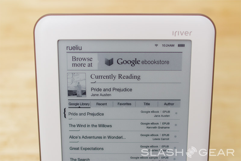 Instead of having to sideload ebooks you've purchased from Google's eBookstore to the iRiver Story HD via SD card or USB transfer from your computer, you can now connect directly to the platform via Wi-Fi. There are hundreds of thousands of Google eBooks for sale and over 3 million free e-books available. Ratings and descriptions can be viewed, however, reviews don't seem to be accessible from the e-reader. The first several pages of an e-book can also be downloaded to sample prior to purchasing.