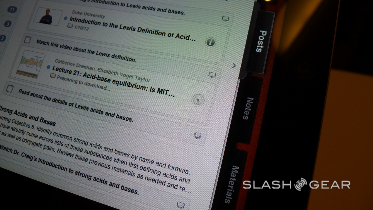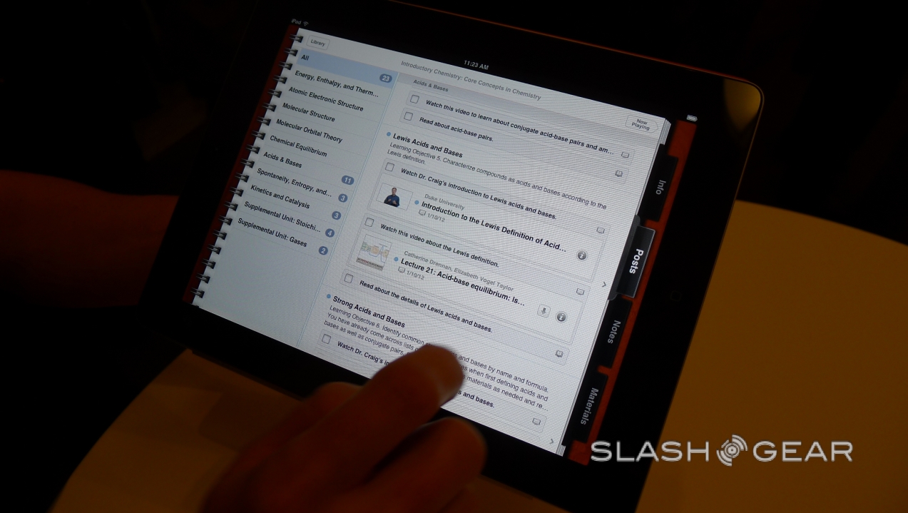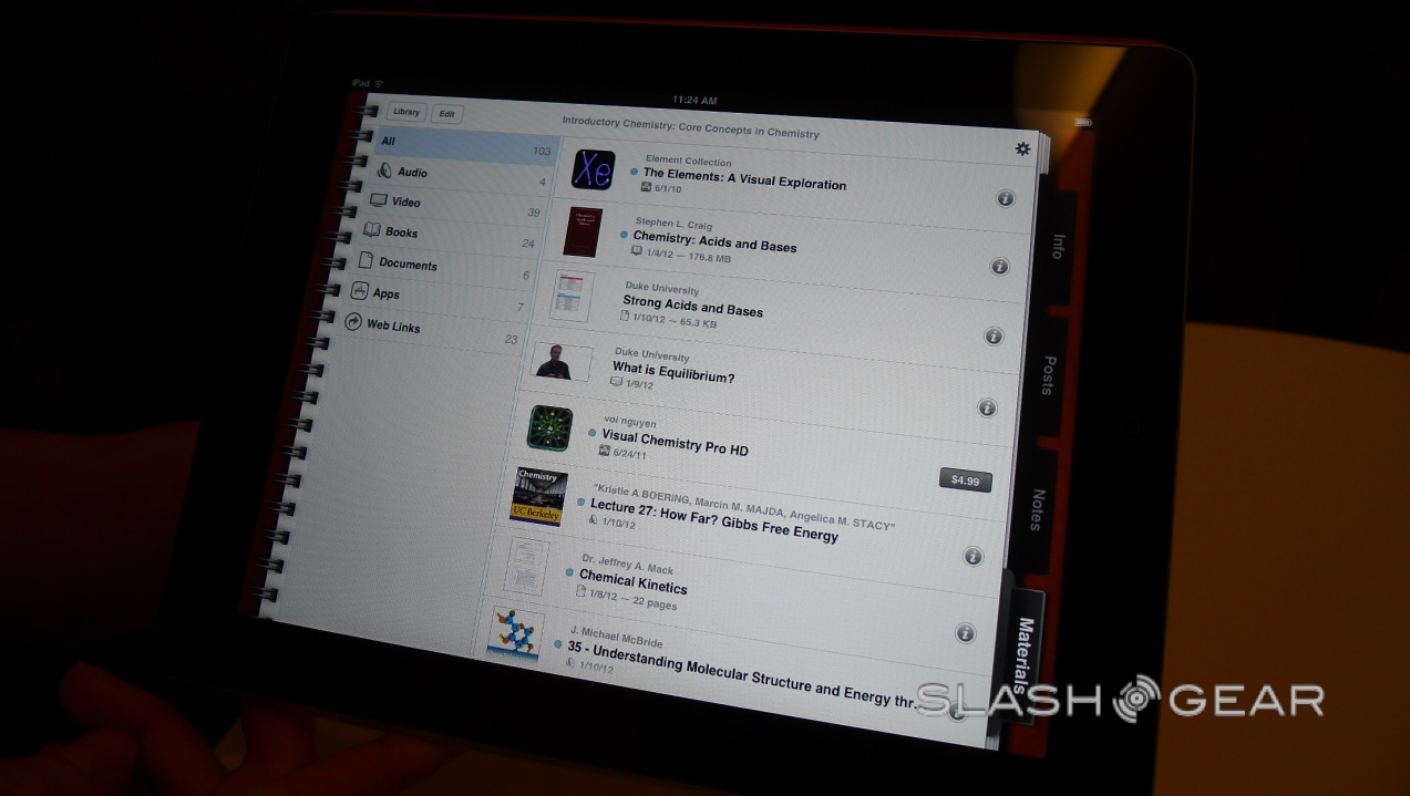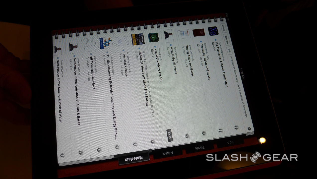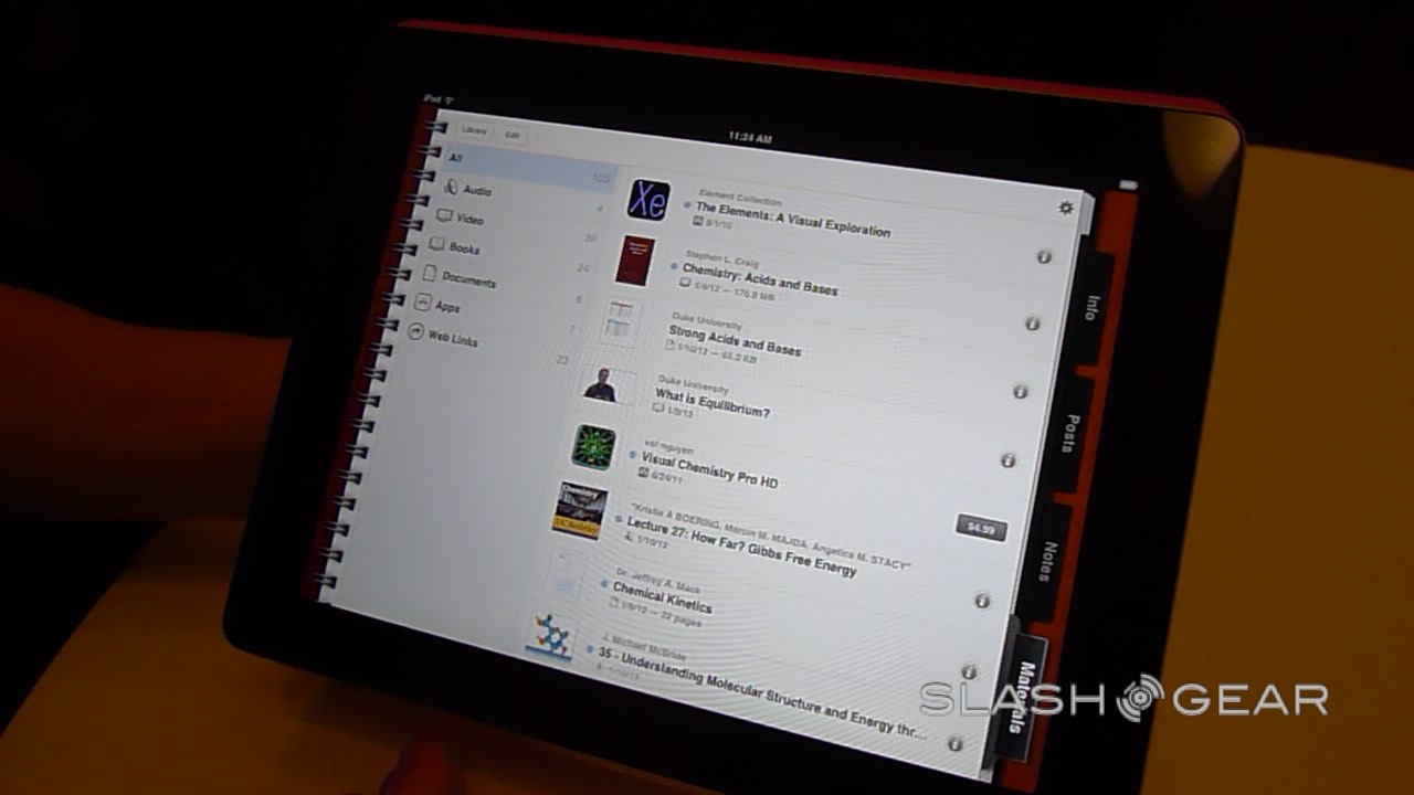 The layout feels much like a paper planner, with individual courses represented iBooks-style and then opening up to a virtual spiral-bound book. We've seen textbooks before, though – from Apple today, in fact – but this goes several steps further, integrating with an educational to-do list for an e-course.