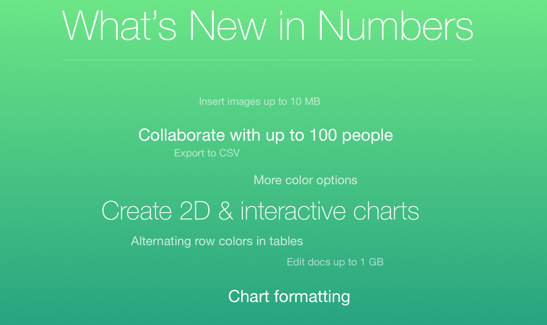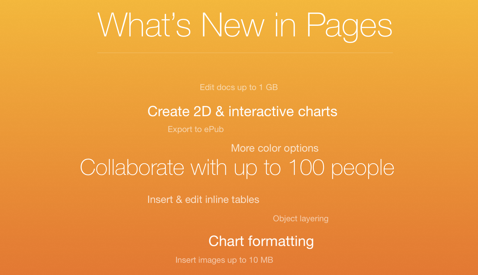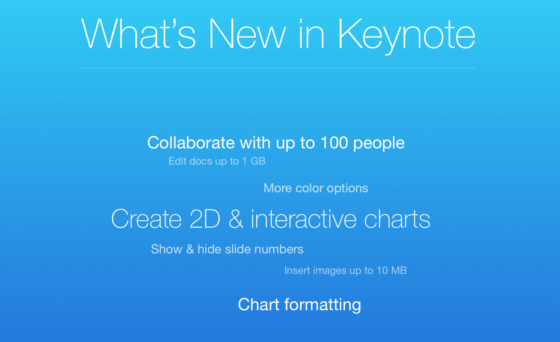 Perhaps most importantly, the update being released today for iWork for iCloud brings on collaboration abilities for up to 100 people in a single document.
