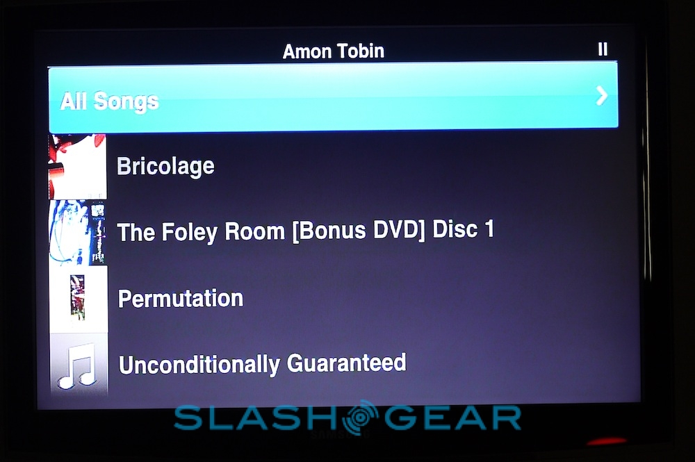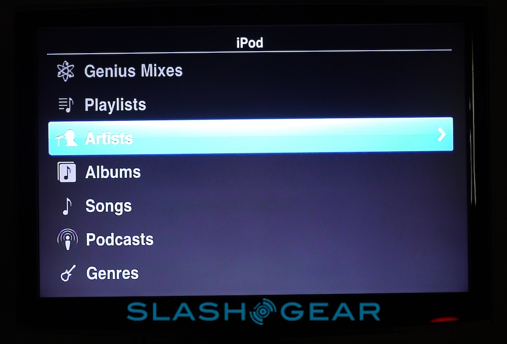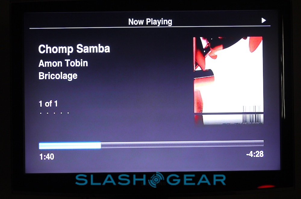 The basic functionality is straightforward: dock your iPod, iPhone or iPad and it starts charging; hit the iPod Mode button on the remote (or choose Dock from the main menu) and you can choose from audio, video or images. The former work as you'd expect, offering a regular list of what titles you have stored on the iOS device, and you can also load playlists (including Genius playlists).