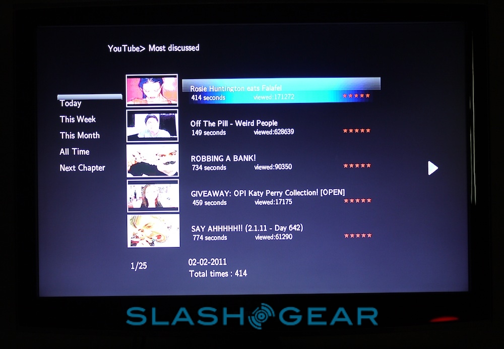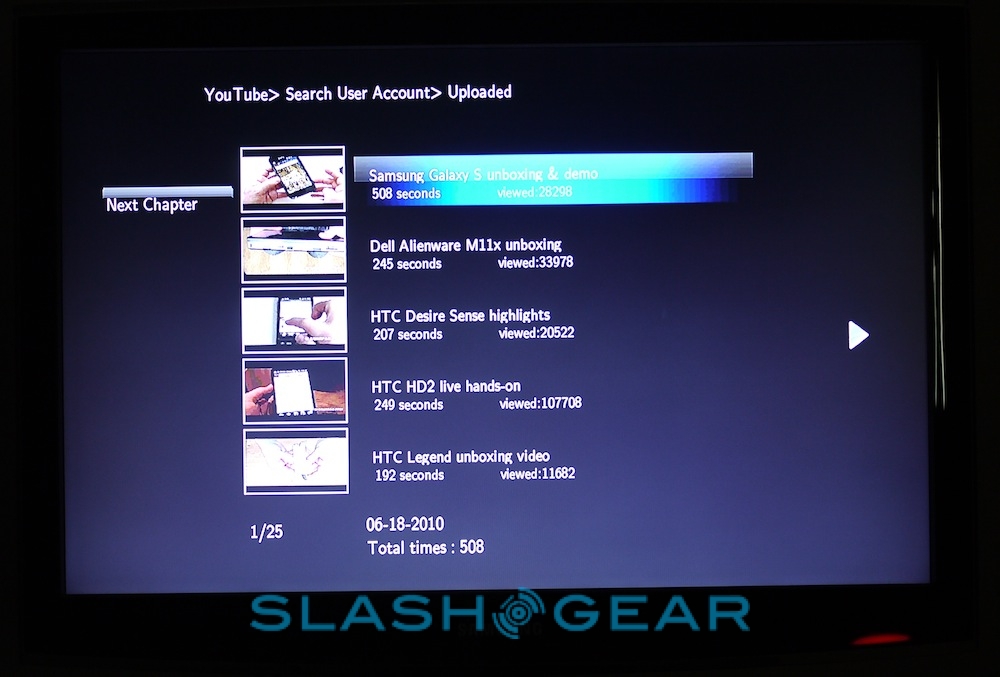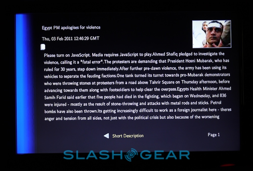 Of those that worked, the experience was generally good. The News app has content from BBC, CNN and others, pulling in text-only stories (with a thumbnail image) which can be browsed first by headline and then the full story shown (albeit with an intervening "summary" stage which seems to serve no real purpose). The YouTube player, like we've seen from smartphone YouTube apps, allows for searches, browsing the recently added, most watched and most highly-rated clips.