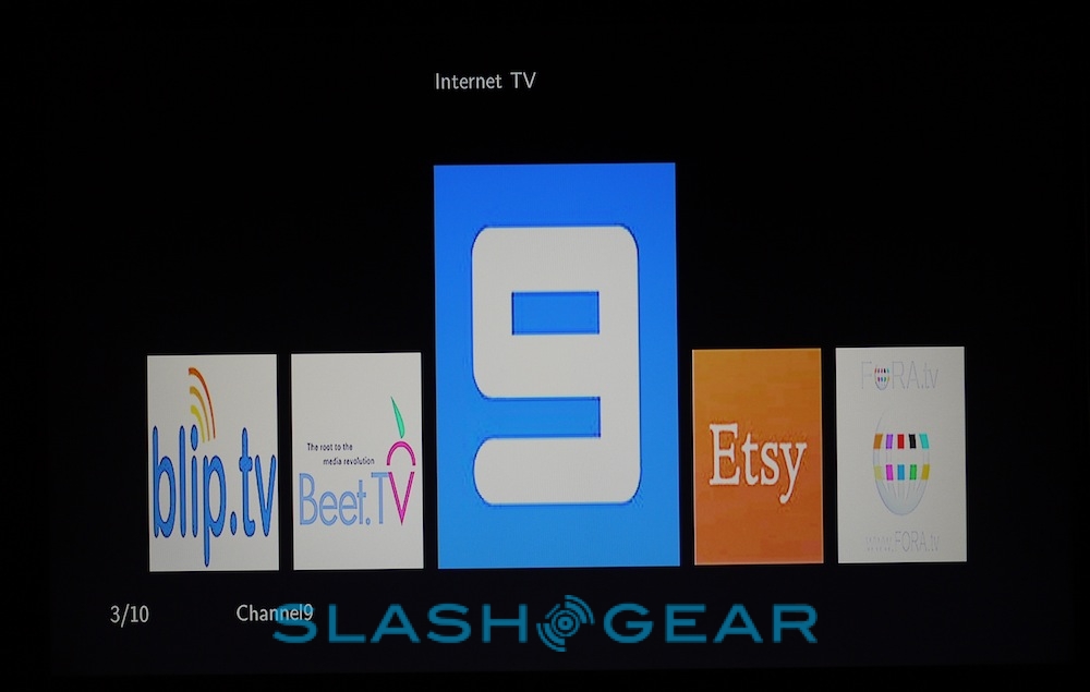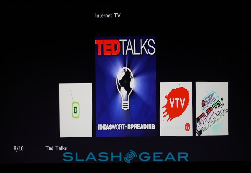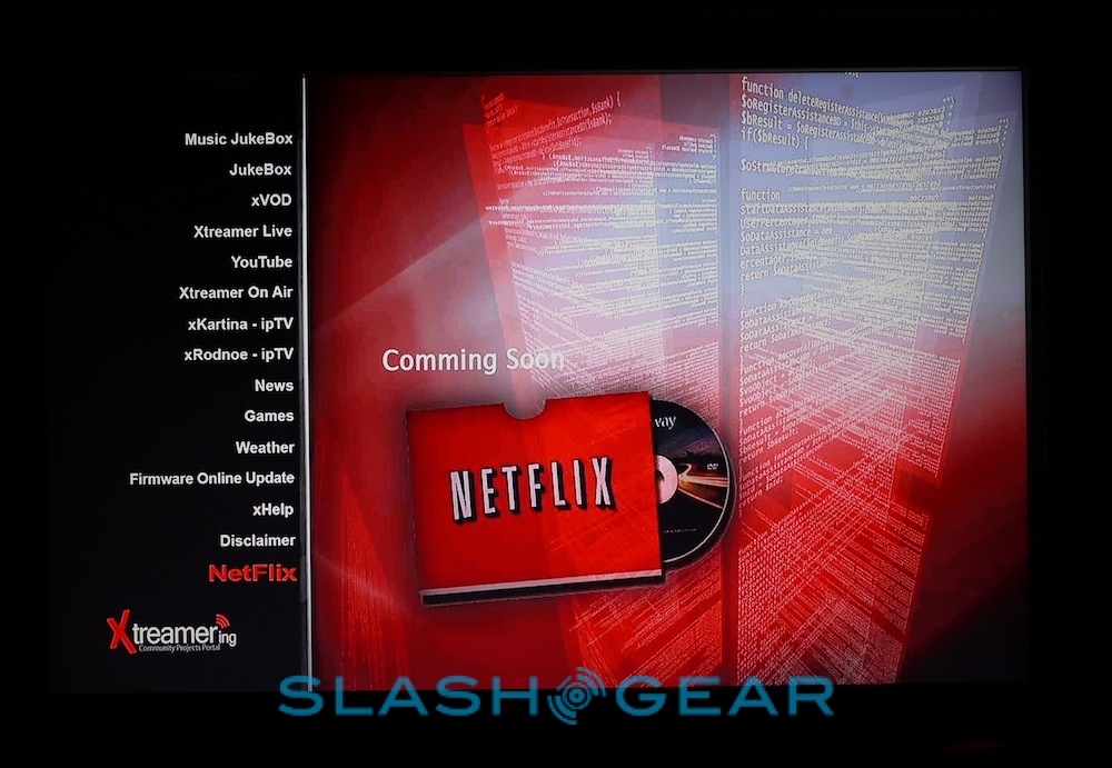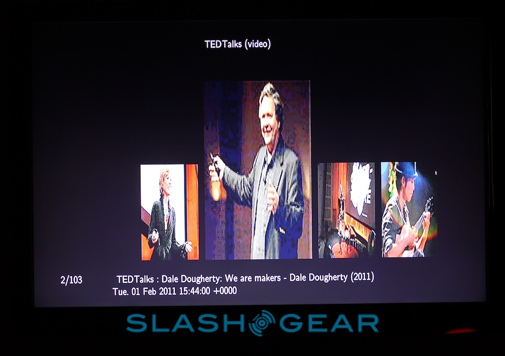 YouTube isn't the only streaming video, however. There's also content from IPTV feeds like the TED talks and from MAKE, as well as a "Golden Oldies" channel that promises full length classic movies. The problem again is that this unofficial content has a habit of disappearing after it's been uploaded; some movies worked, others didn't, but none had thumbnails in the gallery, instead leaving you to navigate by the tiny text at the bottom of the screen. Without search functionality, you're left paging through a few hundred screens, hitting play and hoping the stream will work. A Netflix option at the bottom of the page got us excited, but all it says is "Comming [sic] Soon."