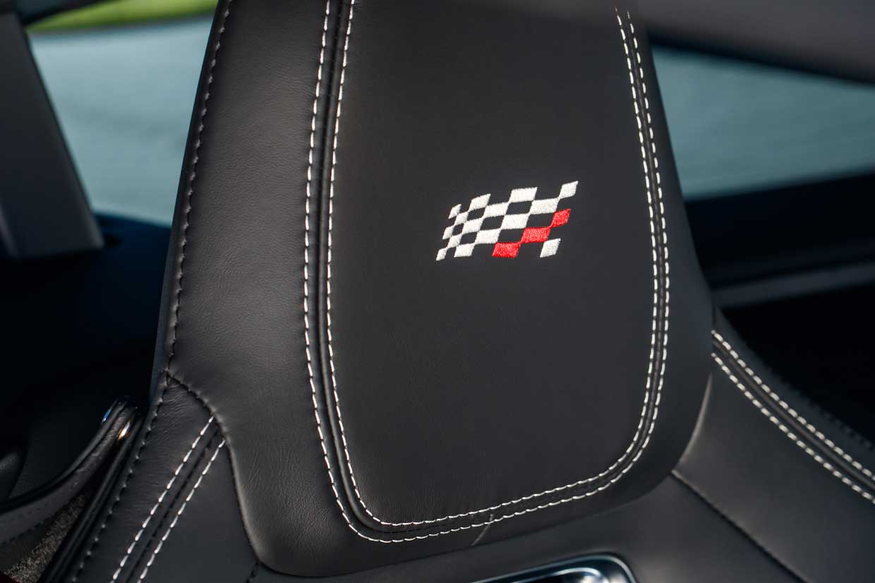 Jaguar revised the damper tuning on the F-Type R to improve ride comfort at low speeds. All Chequered Flag versions get the Exterior Black Design Pack with SVO extended side sills. The black leather inside the car can be had with contrast stitching in red or cirrus.