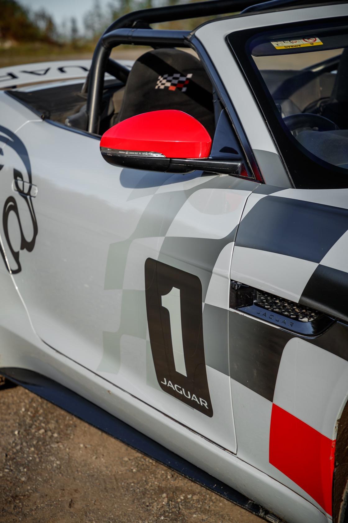 Inside, there's an FIA-specification rollcage, along with racing seats with six point harnesses. A fire extinguisher is also included. The overall styling is based on the F-Type Chequered Flag Limited Edition, which looks a little less striking but has the advantage of actually being up for sale.