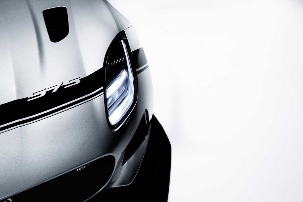 Graphics are also added to the carbon fiber active rear wing, and rear venture along with a contrasting grille surround. Graphics on the hood are in a contrasting color and have 575 on them signifying the 575PS power output of the engine.