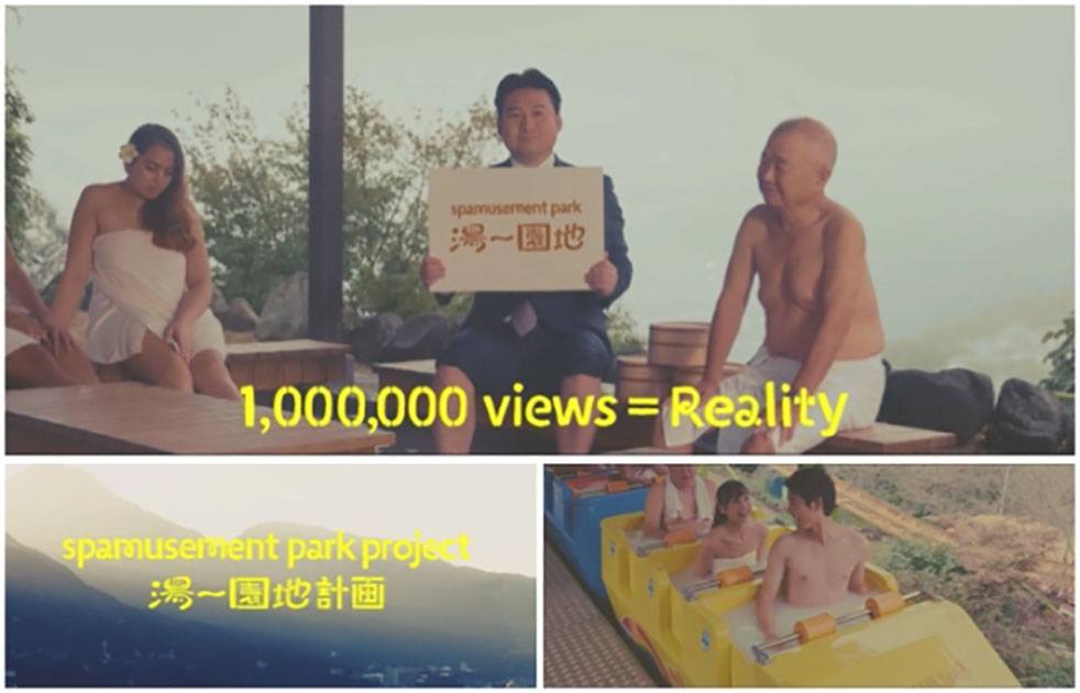In Japan the mayor of a city called Beppu located on the island of Kyushu, an area known for an abundance of hot springs, came up with an idea to get younger folks interested in visiting his town and to promote the hot springs in his city. The mayor and his team made a video that was posted to YouTube that shows what he called a "spamusement park", note that is SPAmusement not SPAMusement. No potted meats with odd gelatinous coatings at this park.