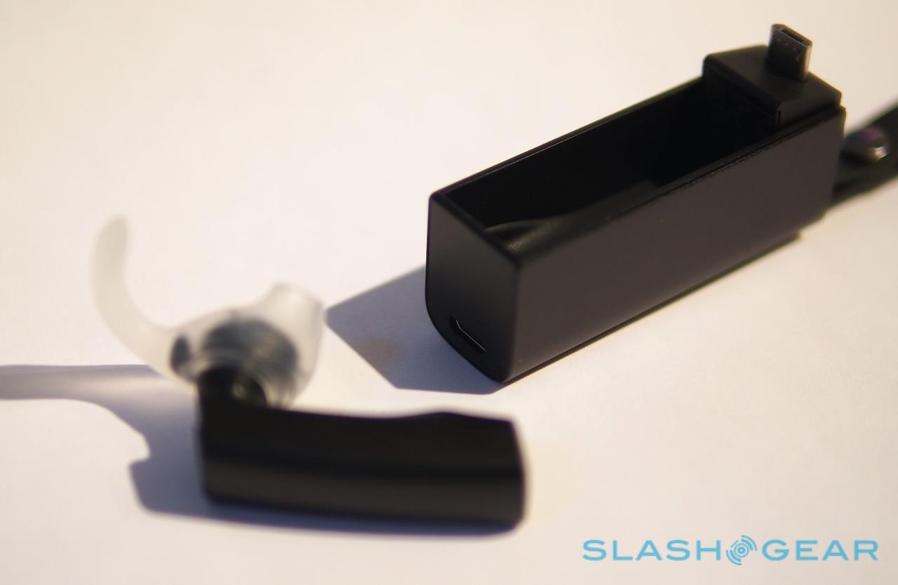 Jawbone claims up to four hours of talktime from the headset, though also offers a compact battery case that takes the total runtime to ten hours. The ERA plugs in and then folds flat, though the earbud still sticks out; there's a microUSB port to charge up both the case and the headset simultaneously, and a row of LED lights to show the case's charge. Jawbone quotes a full charge of both in an hour, which we found to be roughly the case.
