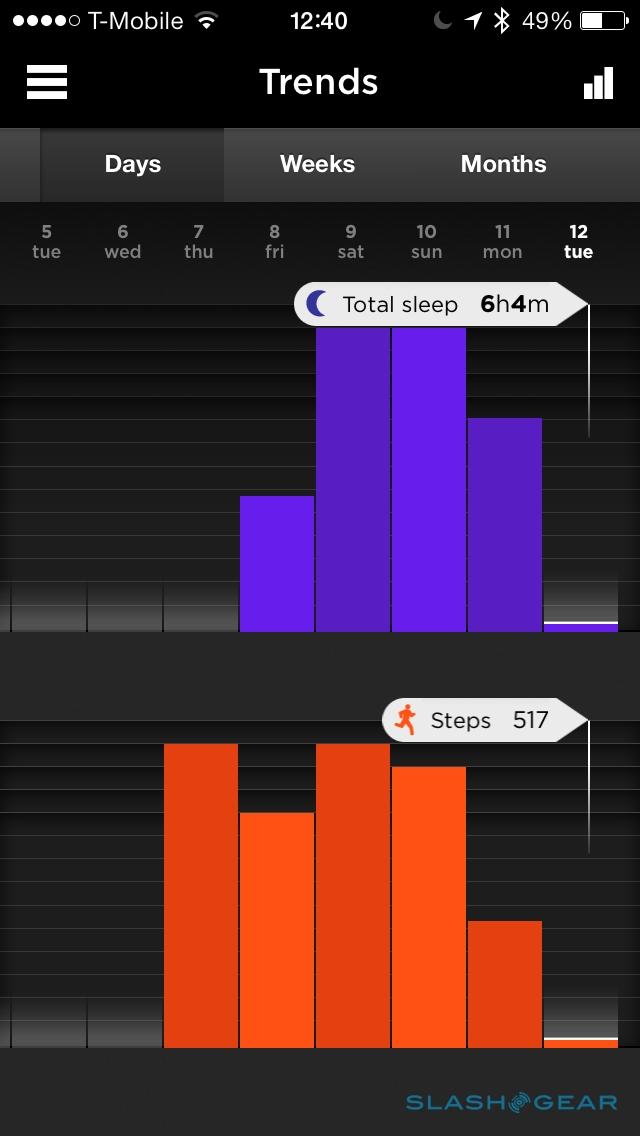 In fact, one of the most welcome features addresses what was among our biggest criticisms of the original UP system: how it handles sleep tracking. Previously, if you forgot to put the band into sleep mode, it would assume you were still awake (but just terribly lazy): UP could figure out if you had got up and not switched back into day mode, but not intuit when you went to sleep. It meant we periodically lost a few days of sleep data every few months.