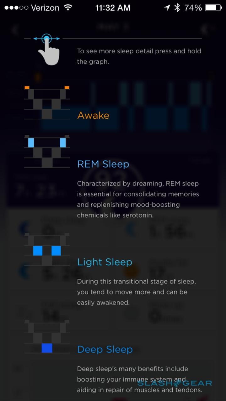 On sleep, the new sensors now add REM phase detection to the previous "light" and "deep" measurements older UP models could track.