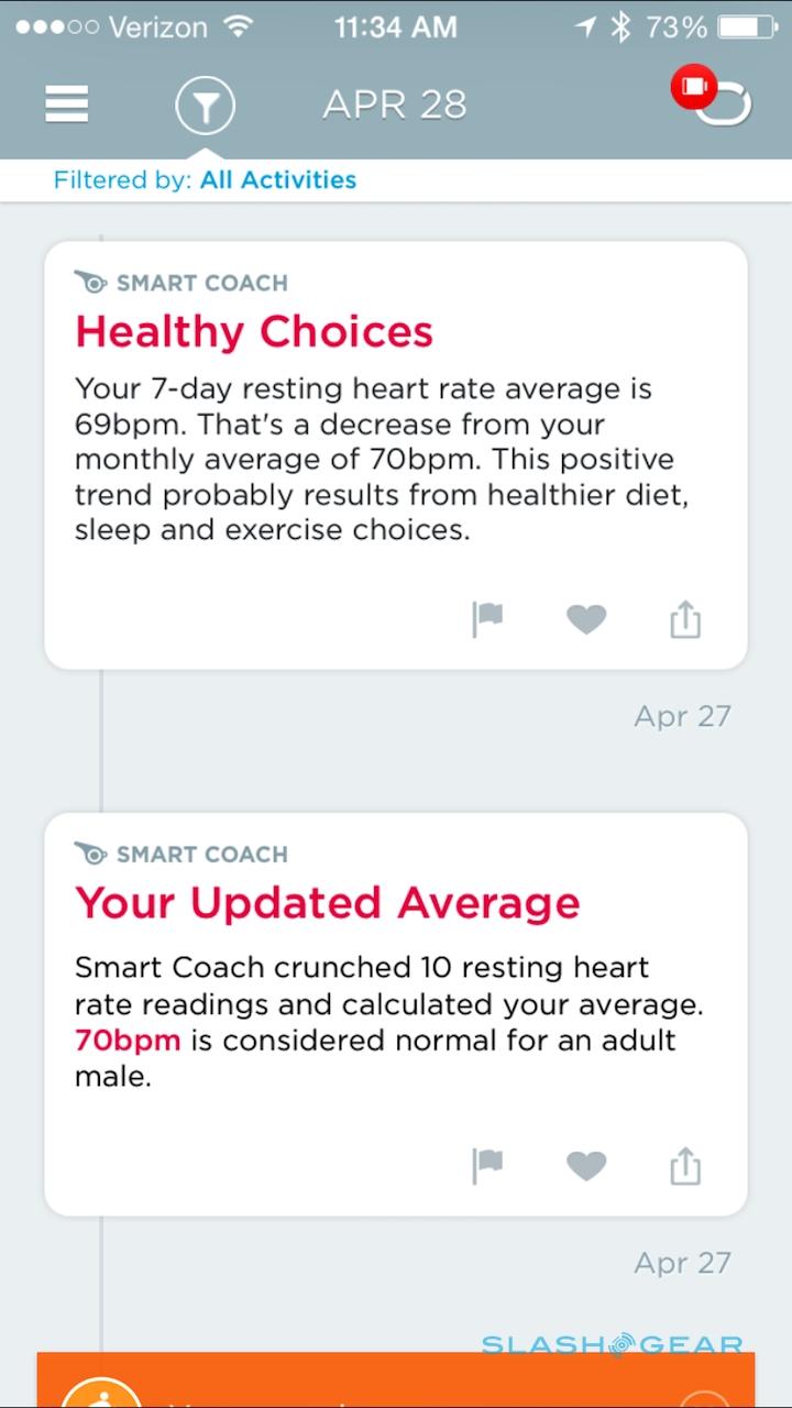 So, when in sleep mode, UP3 keeps an eye on your pulse and then figures out your RHR from just when you start to surface. The three cups of coffee you chug before you leave for work won't affect it, and neither will the twenty minutes of hurried yoga you do: it is, Jawbone claims, the most accurate way to figure out what your body is doing.