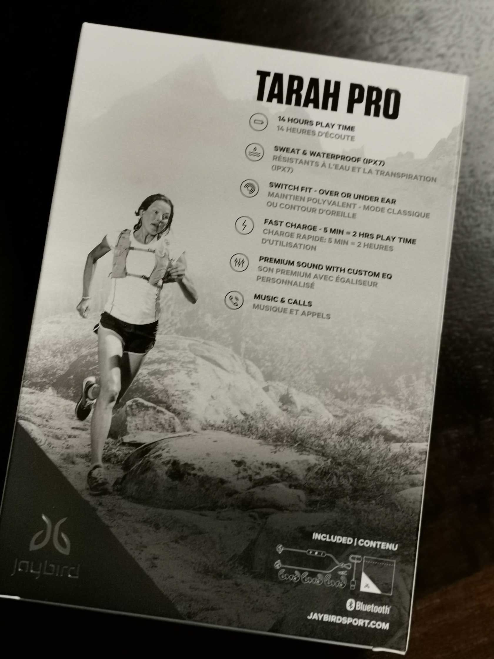 Holding the Jaybird Tarah Pro box in my hand, I'm struck by the image of a mountain runner moving fast and free as a bird over technical terrain. A lone human in a range of misty mountains – with no visible sign of dangling wires; simplicity at its best. Man in nature with the Tarah Pro delivering driving beats to override a mental, emotional, and physical state of exhaustion. I connect instantly with the image, since, I myself, am a mountain runner – one whose been on the hunt for the perfect sport headsets. Heartbroken, at having cycled through four pairs of dead-beat buds over the last year... might I have found my best buds ever? Tarah Pro offers me some real hope.