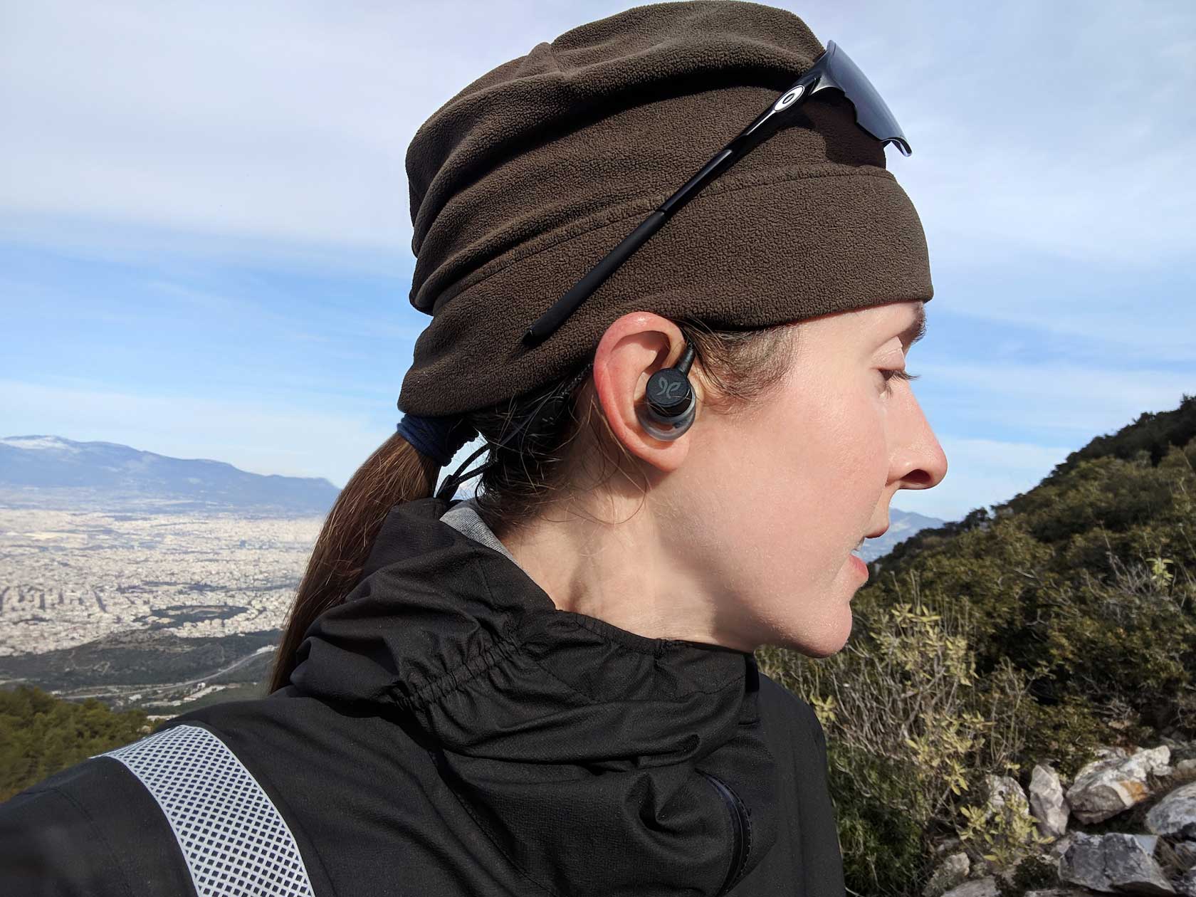 In the over ear/sport-fit position, they offer complete freedom out in the field. The power/volume pad sits just behind the ear and is easy to access with a tap of your fingertip. Turn your head at will, pump your arms back and forth, stay at race pace through brush and branches – nothing snags or feels restrictive; be as dynamic in movement as you want. The Tarah Pro stayed snug as a bug in the ear while out on my mountain run.