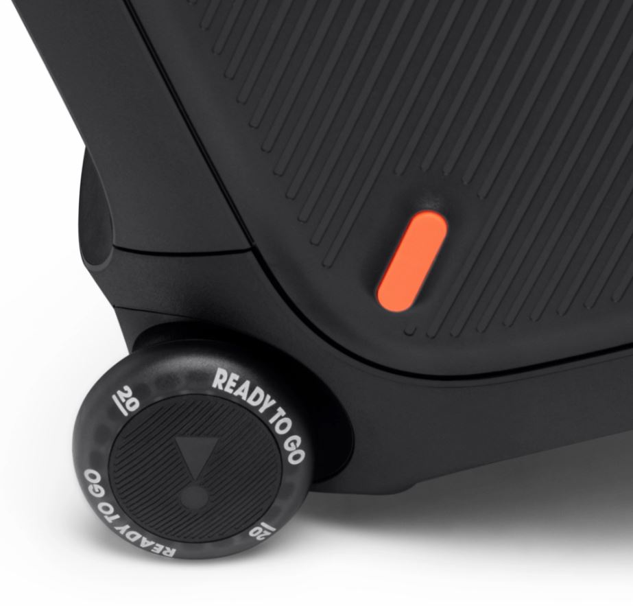 We started with the tiny Clip 4 and Go 3, and now we're ending with the the PartyBox 310 – a speaker that own set of wheels and a retactible handle. The PartyBox 310 serves up a number of improvements over the PartyBox On-The-Go, outputting at 240W with an 18-hour battery life (at least according to JBL's own metrics). Like the PartyBox On-The-Go, lights inside the speaker sync up to the music and the PartyBox 310 carries the same IPX4 splashproof rating as its more portable cousin.