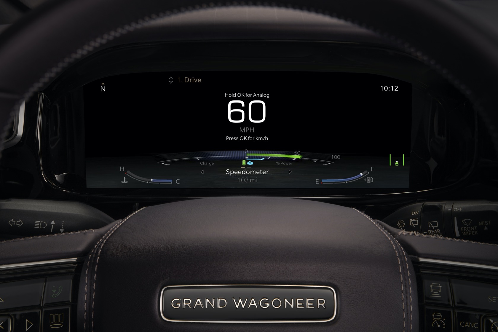 The production Grand Wagoneer will be revealed next year, Jeep says. It'll offer a choice of three 4x4 systems and Quadra-Lift air suspension, with an independent front and rear suspension system, "unmatched" towing ratings, and some of the design that's previewed in today's concept.