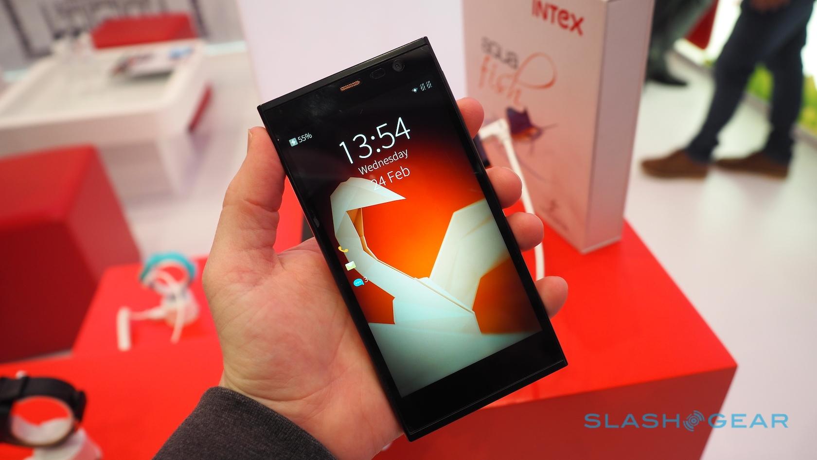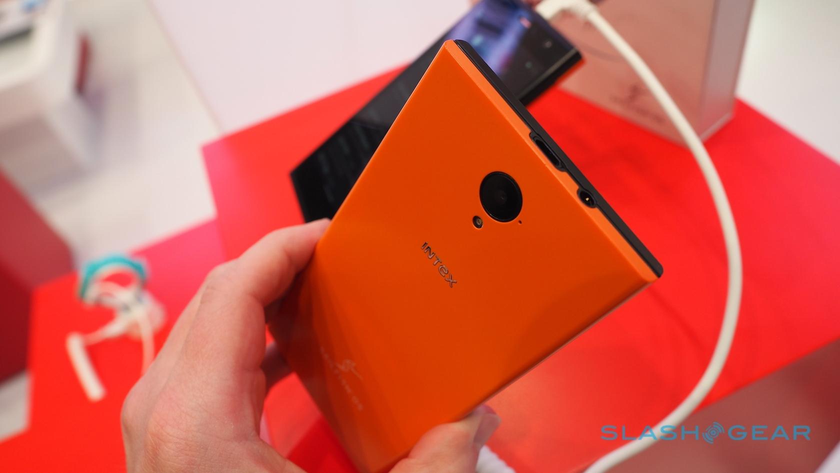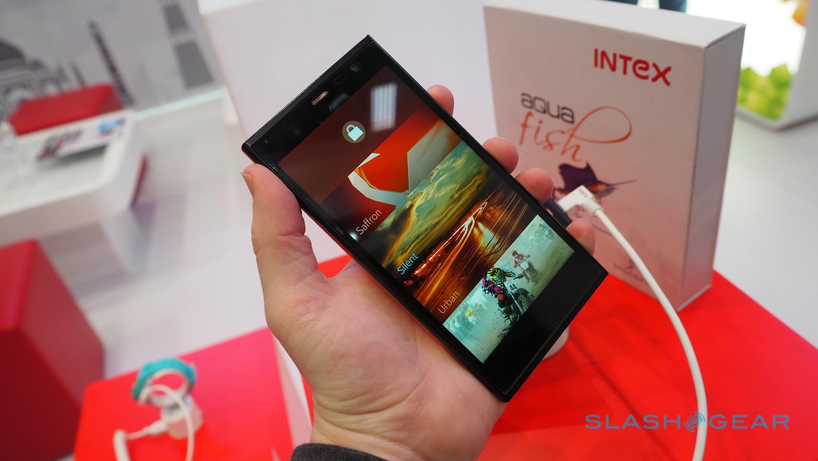 It's the second half of that which is looking more successful at this point. Intex's Aqua Fish isn't especially inspired in design or specifications – it's a sturdy black and orange slab, with a 5-inch 1280 x 720 display on one side and an 8-megapixel camera on the other, with a mere 2,500 mAh battery, 1.3GHz Qualcomm processor, and 2GB of memory – but at least the company has solid plans to bring it to the market.