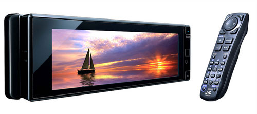The starter receiver in the line is the KW-AVX640. This receiver is Bluetooth ready and when fitted with the optional Bluetooth radio it can support voice dialing and other mobile phone features. The unit will ship in February for $499.99. A single-din AVX77 unit is also available with a thin and long screen taking up the entire front of the system. It is available right now for $649.95 with Bluetooth, iPod/iPhone control and a lot more.