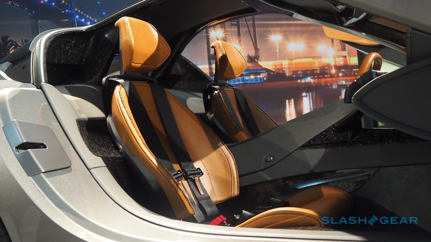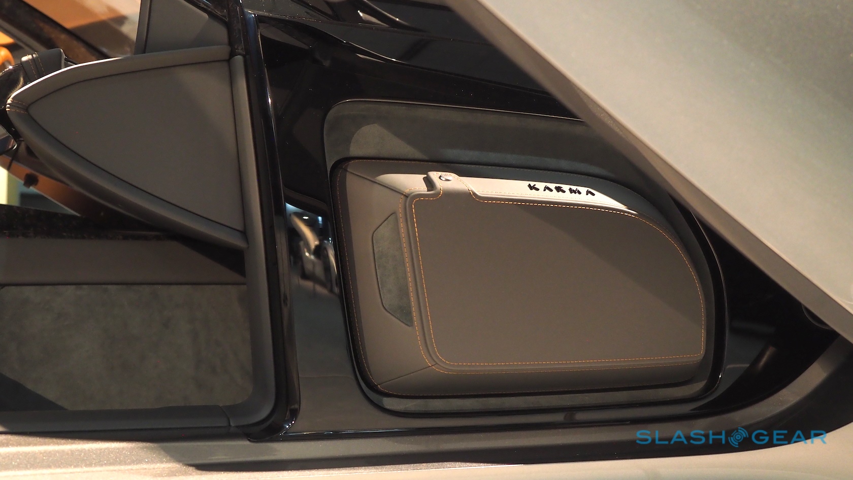 Inside, there's a fiber optic roof and electrochromatic glass, which can dim to opaque for privacy. Plenty of leather and exposed carbon fiber keep it feeling suitably luxurious, and there's custom luggage too. Sadly Karma doesn't seem to have SC2 production in mind, instead positioning the concept coupe as a showcase of some of the technology it could help develop for others.