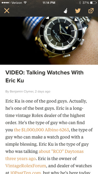 Rose is the first to admit that Watchville is quite a departure from his tech background. Speaking to TechCrunch, he says he went his entire life until recently with zero interest in watches. That changed when his father passed away, leaving him a well cared-for Rolex, and prompting him to learn more about timepieces. Watchville is different in that the app is specifically made for a small, dedicated audience, and one that hasn't had an app built to suit their needs. It isn't trying to be the next mass-appealing social platform, such as photo/video sharing Tiiny.