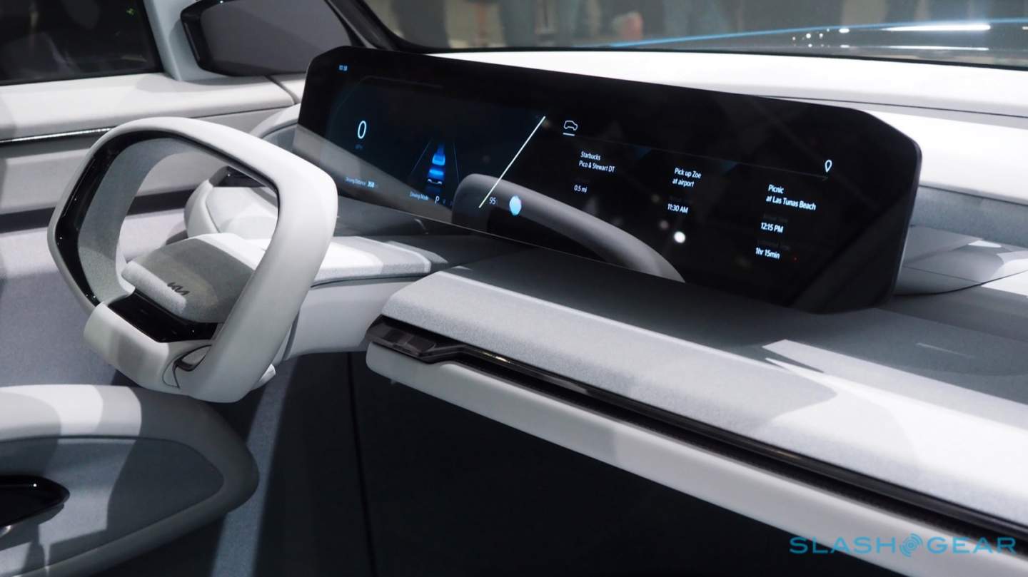 Kia used that opportunity to experiment with some neat features that are refreshing in their practicality. The touch-sensitive HVAC controls that glow through the fabric-wrapped dashboard not only look great, but they don't feel too far from something Kia could actually use in a production vehicle. The same goes for the integrated storage, and the way the seats are mounted which emphasize the benefits of an EV's flat floor.