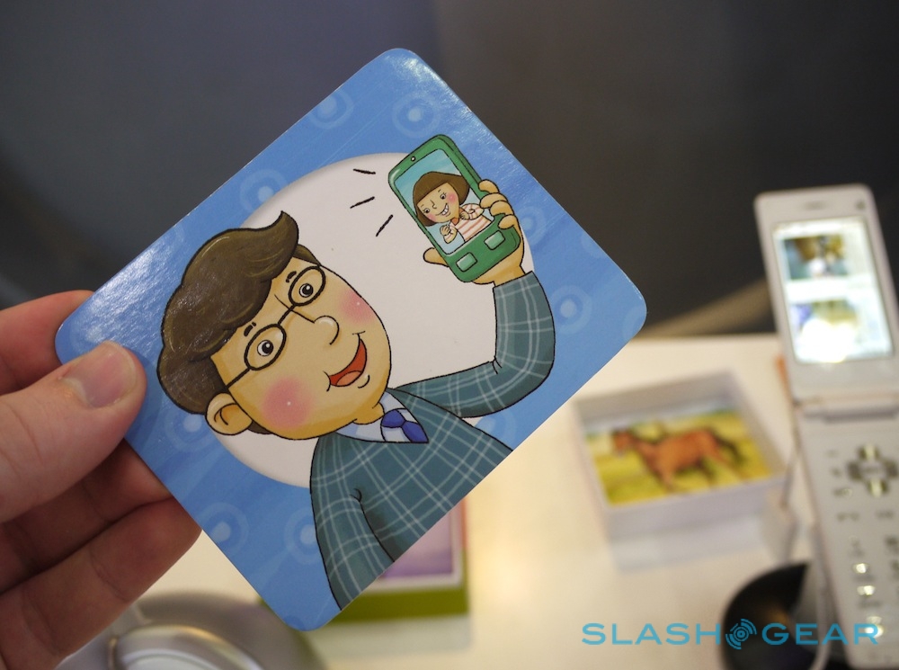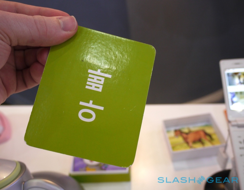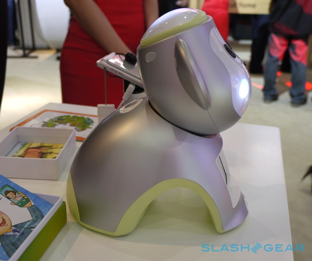 That NFC chip uses specially-tagged books and cards to load different features and trigger differen functionality. Hold up a story book to Kibot, for instance, and it pulls up an animated read-through shown on-screen and played through the robot's speakers. Cards showing parents' faces initiate video calls with their cellphones.