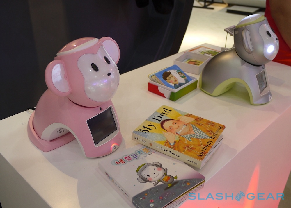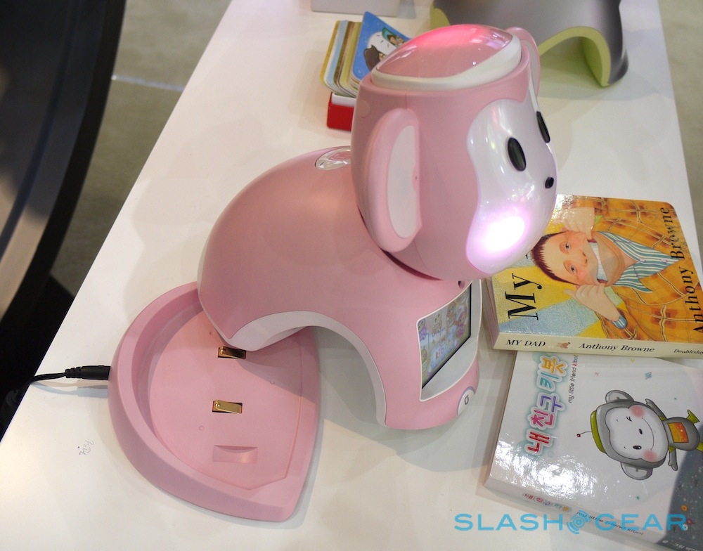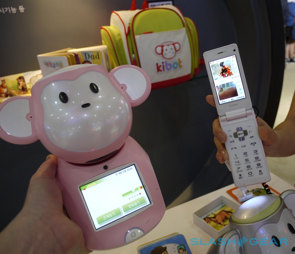 South Korea's big companies Samsung and LG may be battling it out on serious playing fields like 3D TV and who can make the skinniest smartphone, but everybody knows that the most excitement is in pastel-colored monkey robots. Kibot is carrier KT Telecom's attempt to condition children to the inevitable AI takeover, a trundling, warbling robot that uses NFC, two way video calling and WiFi to remotely monitor, entertain and generally play with them.
