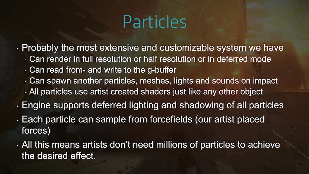To show how well the game ran, the developers had to cook up their own CPU and GPU profilers, since the official tools still aren't quite ready. On-screen, there's a physically-correct lighting model and volumetrics supported on every light, along with real-time reflections. Some of the most obvious improvements are in characters, with far greater detail allowed.