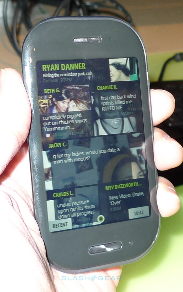 As for the Kin Two, that has a more traditional slider form-factor with a broader keyboard more suited to two-handed use. That has meant the display can be bigger and higher resolution – QVGA in fact – but it's the aspect ratio difference that makes it easier to use overall. Web browsing requires a little less zooming since you can fit more page-width on screen at any one time. As with the Kin One there's EVDO Rev.A, WiFi and Bluetooth; we'll have to wait until fall 2010 for the GSM versions that will arrive on Vodafone in Europe.