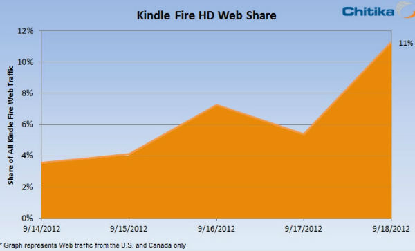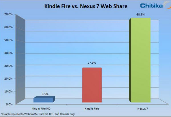Amazon's new Kindle Fire HD tablet has only been available commercially for the better part of a week, and new reports are already coming out showing just how stiff their competition will be against Google's Nexus 7. The popular ad tracking and analysis firm Chitika just released some new data showing the Fire's already taking 11% of all Kindle Fire web share, but that the Nexus 7 is much higher.