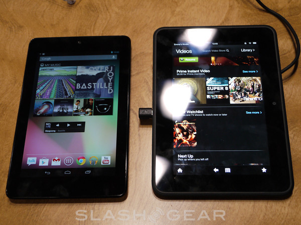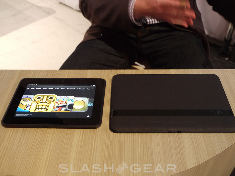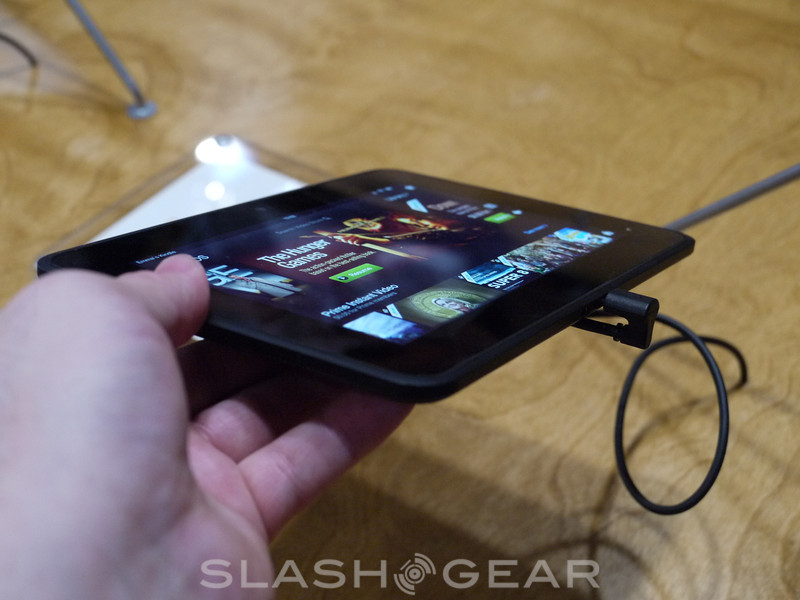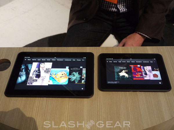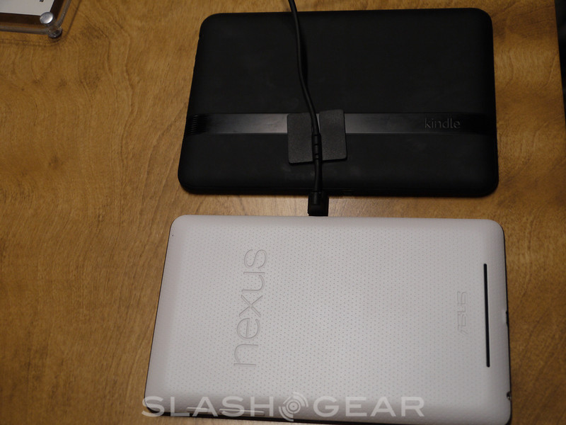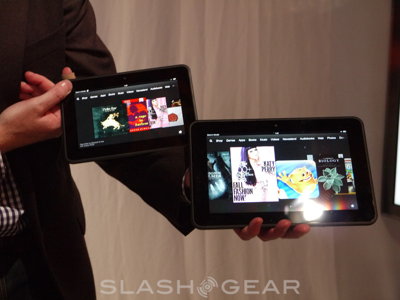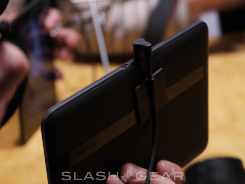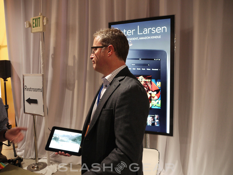 Note also that the 7-inch version of the device appears to be closer to final form than the 8.9-inch version of the device, the latter being held to the side by none other than Amazon's own Peter Larsen a this week's event. Don't worry though, the biggest difference between the 7 and the 8.9 is the display size – stay tuned to SlashGear for more on the development of these tablets as it occurs!