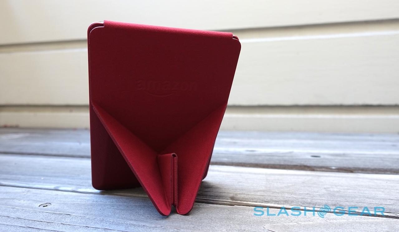 Then there are Amazon's fancy origami covers, which not only protect the ereader but can prop it up after some clever magnetic folding. Figure on a not-inconsiderable $44.99 for the plastic versions or $59.99 for the leather. They work, certainly, but they add no small degree of bulk in the process.