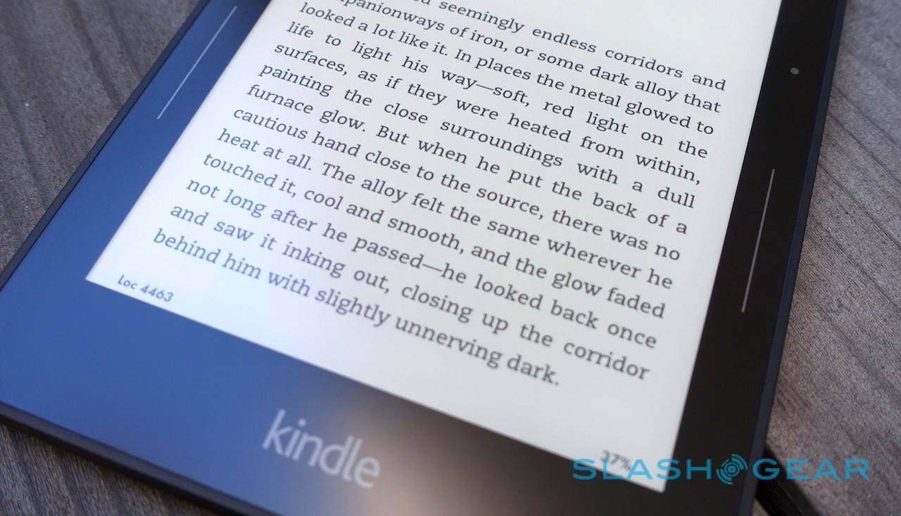 Squeeze the bottom half of the bezel on either side, and you'll flip forward a page. Squeeze the top, and you'll flip back. Amazon marks the general area of each with either a line or a dot – though there's a little flexibility in where, exactly, you can push – and there's an optional buzz of vibration to confirm you've pressed sufficiently.