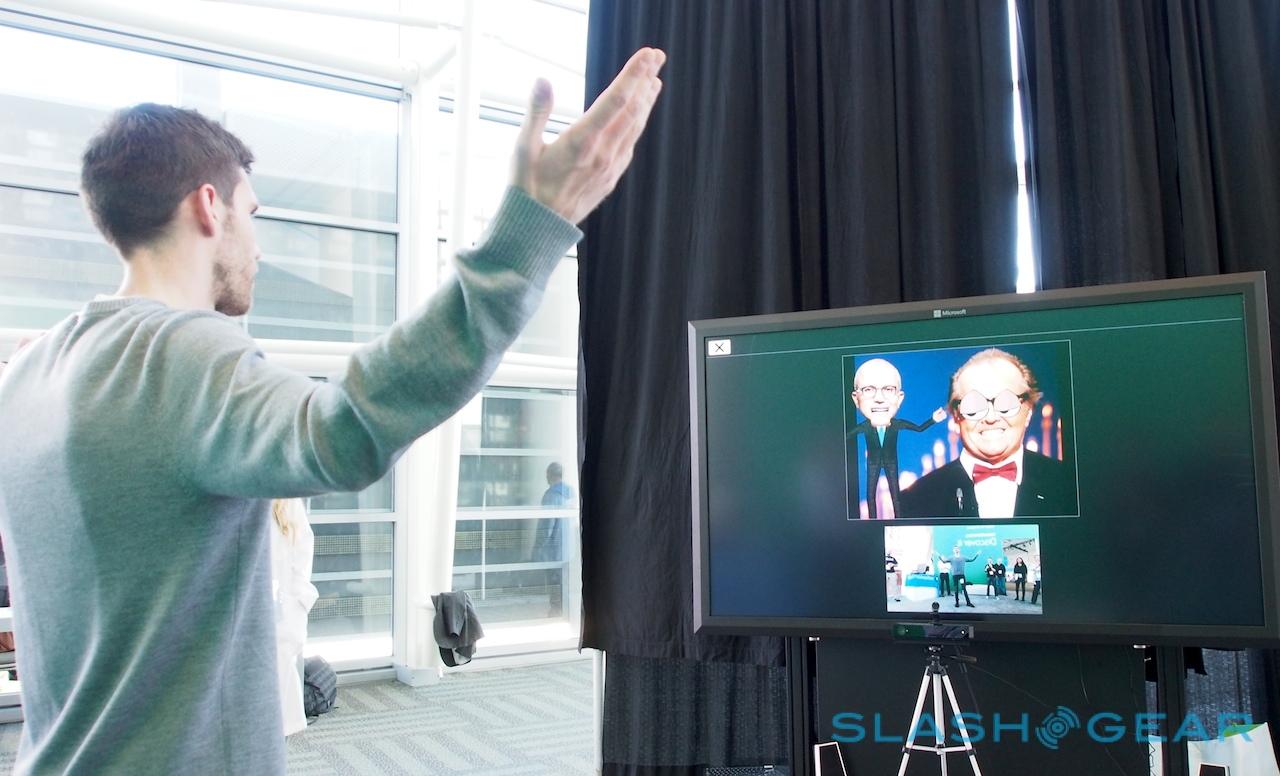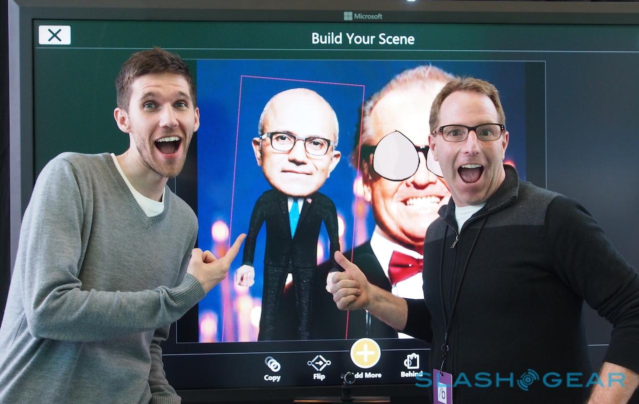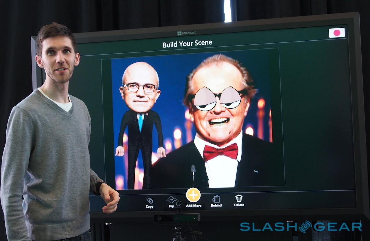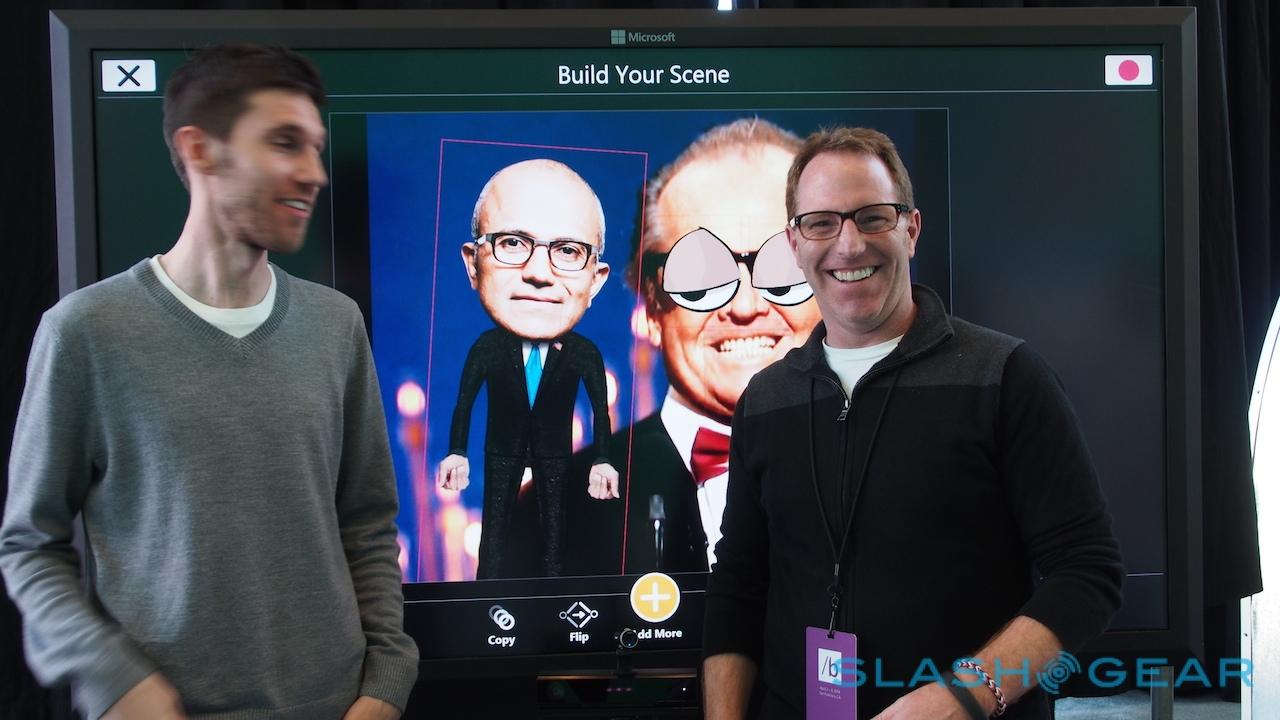 Microsoft's other big demo for Kinect for Windows v2 was Freak'n Genius, which created a version of its motion-controlled animation studio for the platform in about a week. Photos can be animated – CEO Kyle Kesterson quickly pieced together a scene with Jack Nicholson and Microsoft chief Satya Nadella, complete with jabbering mouths and goofy eyes – simply by "teaching" them through your own movements in front of the movement sensor.