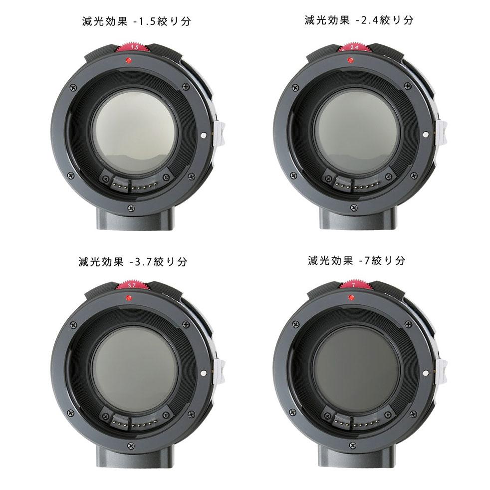 The adapter also has a variable ND filter that can be turned via a wheel that sticks out of the barrell. Thais is marked with values between 1.5 and 7 f-stops. This allows wide apertures to be used with shutter speeds appropriate or shooting video. The adapter has an EF-S mount and it can be used with both EF and EF-S lenses. It covers the full frame image circle used on an a7 series camera.
