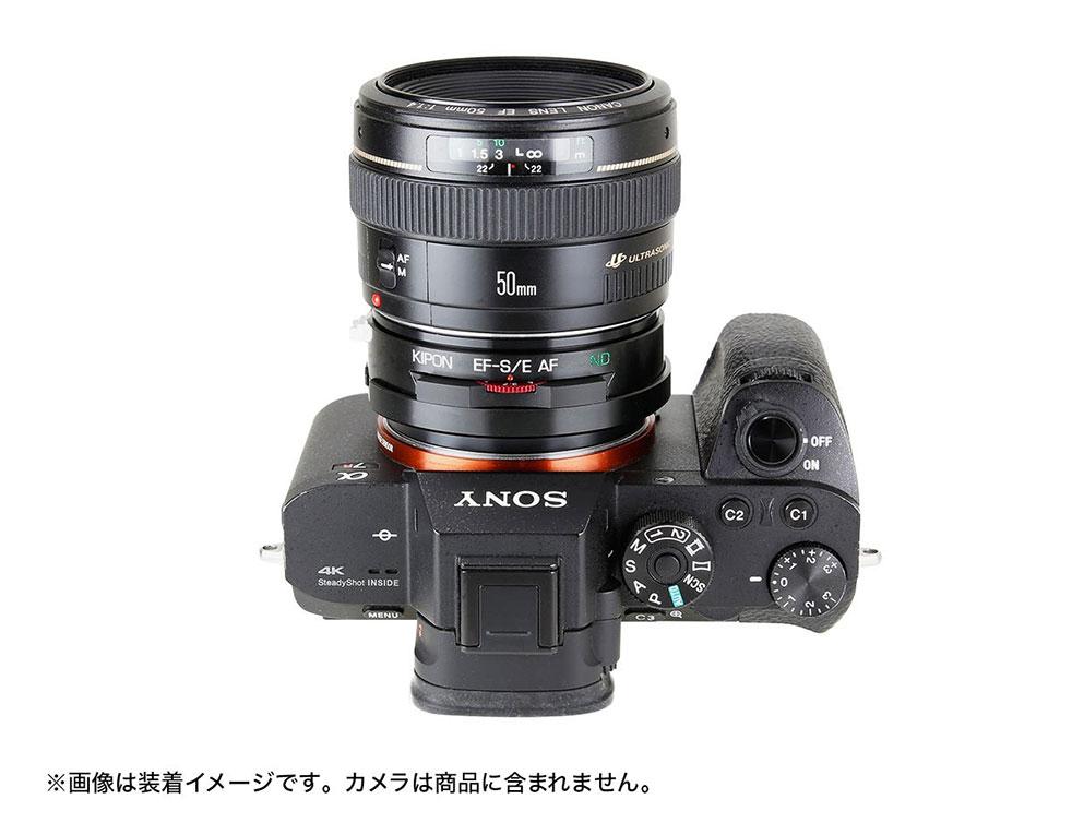 The adapter is the Kipon EF-S/E AF ND and allows photographers to maintain the autofocus and image stabilization features. EXIF data is also communicated to the when the adapter is used. Other features include the ability to manually focus and trigger MF assistance features like peaking or magnification.