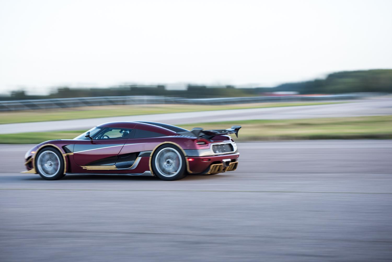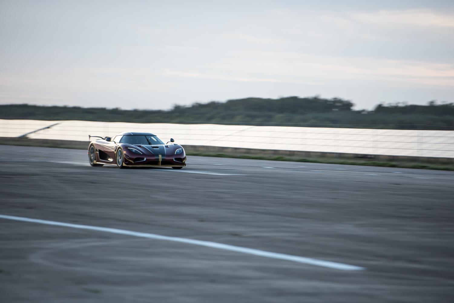 The car is fitted with the optional and removable Koenigsegg rollcage that adds weight, but is recommended for extreme driving. That roll cage can be removed by the owner in a few hours. The run had originally been planned for September 30 and October 2 in Germany, but poor weather postponed the run.