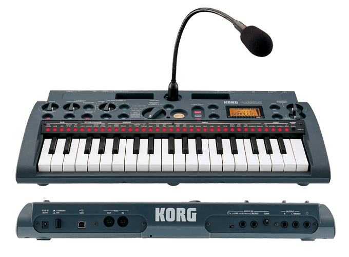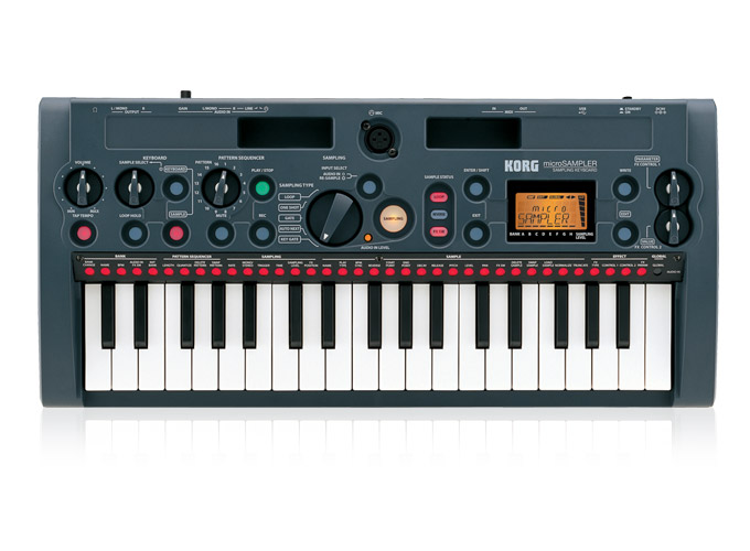 Korg have outed their latest product range, including the MicroSampler mini-synth shown here, a new digital percussion instrument, the WAVEDRUM, and a stage keyboard, the SV-1 Stage Vintage Piano. Of the three, we're perhaps most intrigued by the MicroSampler, a compact keyboard with a sampler, loop sequencer and onboard effects, all of which are intended to be used in real-time performance.