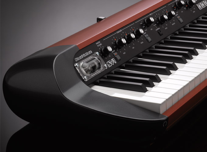 As for the WAVEDRUM, that has a touch-sensitive drum-pad surface and a new hybrid DSP synthesis and PCM playback engine; 100 sounds are preloaded, and there are 100 empty slots for you to create your own. There are also loops and an aux-in input. Finally, the SV-1 Stage Vintage Piano recreates 36 different classic instruments, including electro-mechanical, transistorized, tape-driven, analog and early digital keyboards, and is available in 73- and 88-key versions.