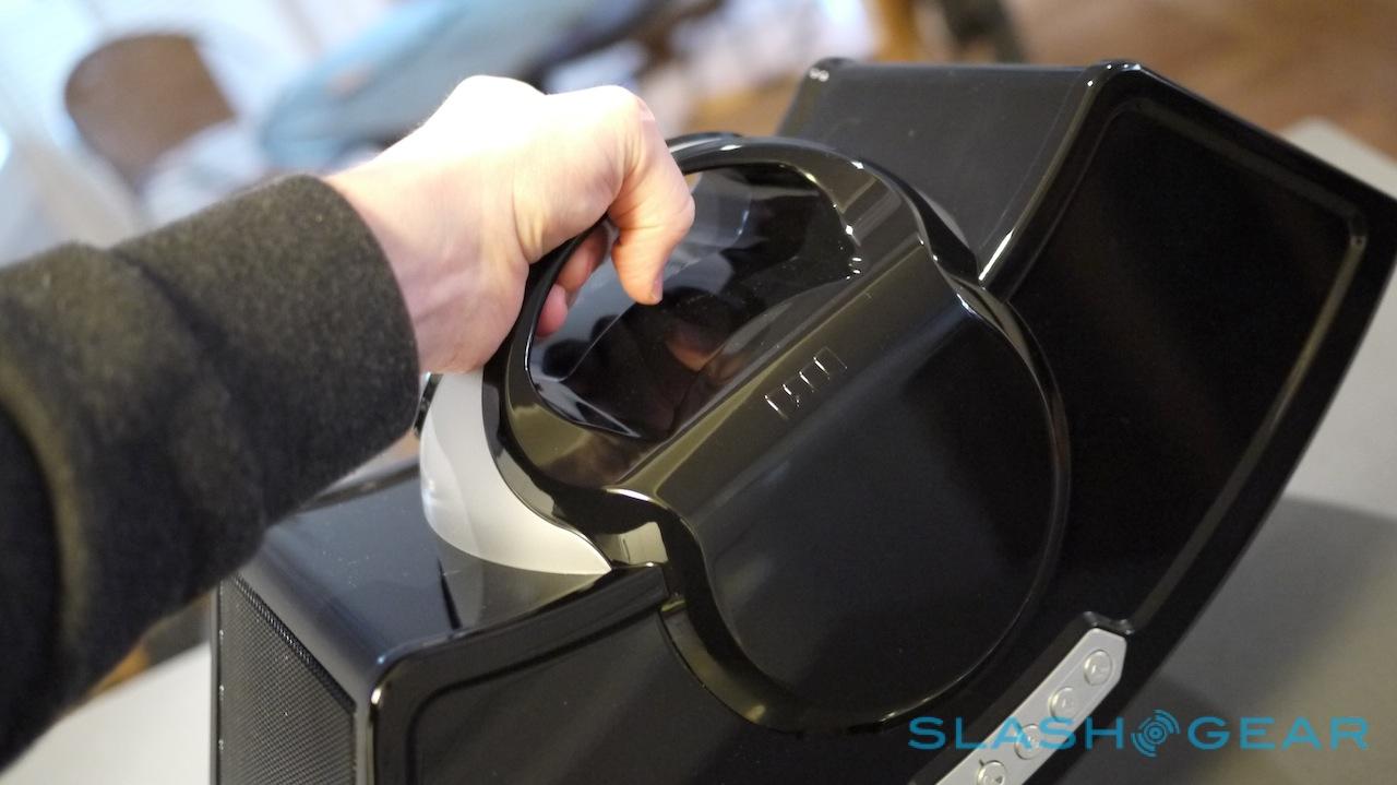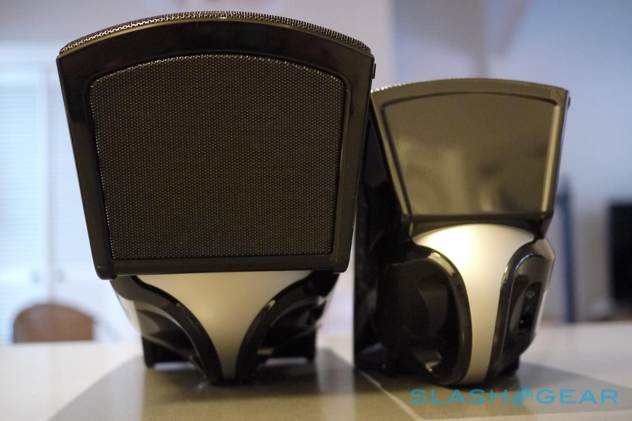 They feel solid, certainly – at 11lbs the larger V600 ($399) is actually heavy enough that toting it around the home is something we started to avoid, especially when you add in the six D cell batteries it supports for a claimed 90hrs of portable use, something the still-heavy 4.4lb V400 ($299) doesn't get – but the shiny plastics instantly pick up fingerprints and don't' look quite as "premium" as the matte finish on, say, a Sonos.