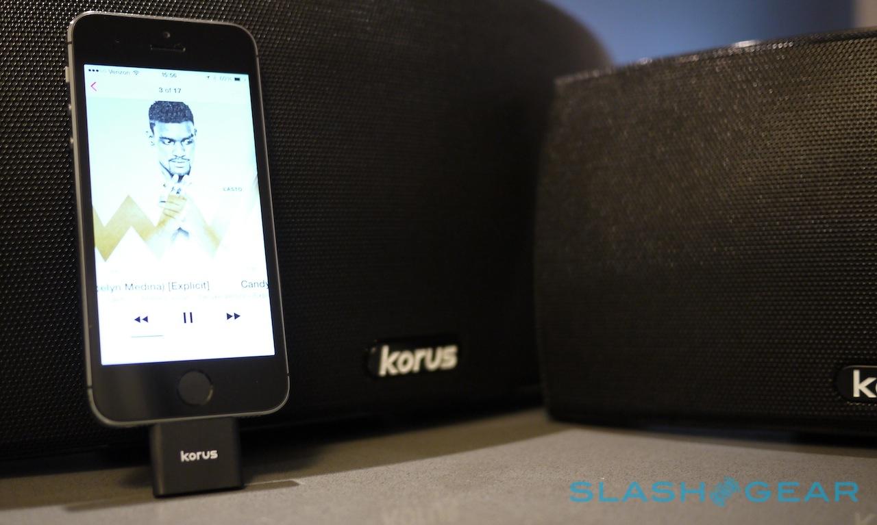 Korus' conceit is eschewing Bluetooth and WiFi streaming, or even Apple's own AirPlay, in favor of its own proprietary SKAA streaming system. The advantage is convenience and immediacy, Korus says: no lag, as there can be with Bluetooth, and setup is simple between up to four speakers.
