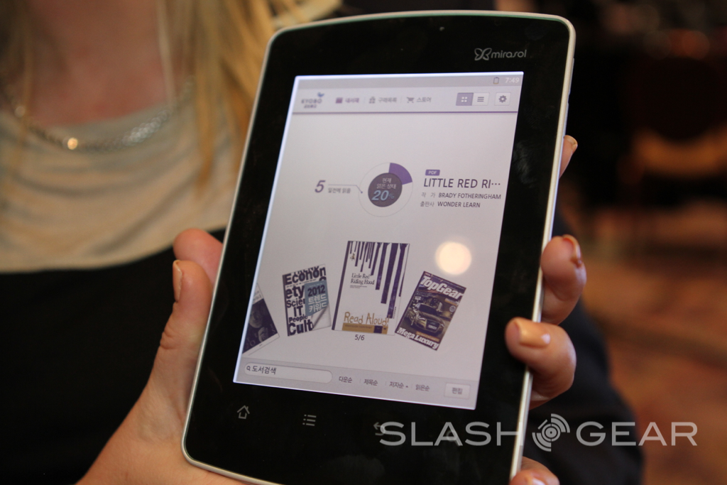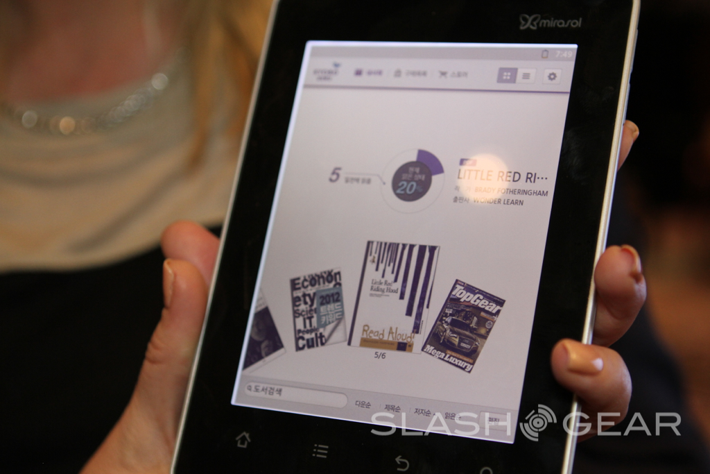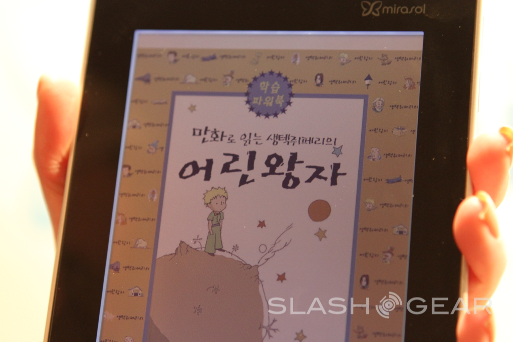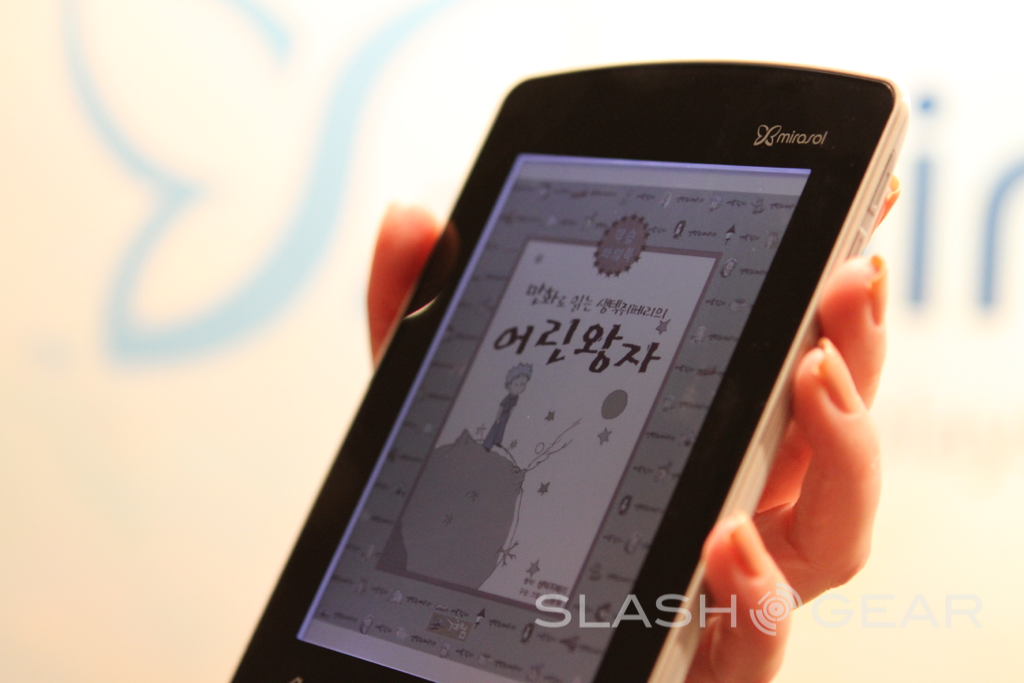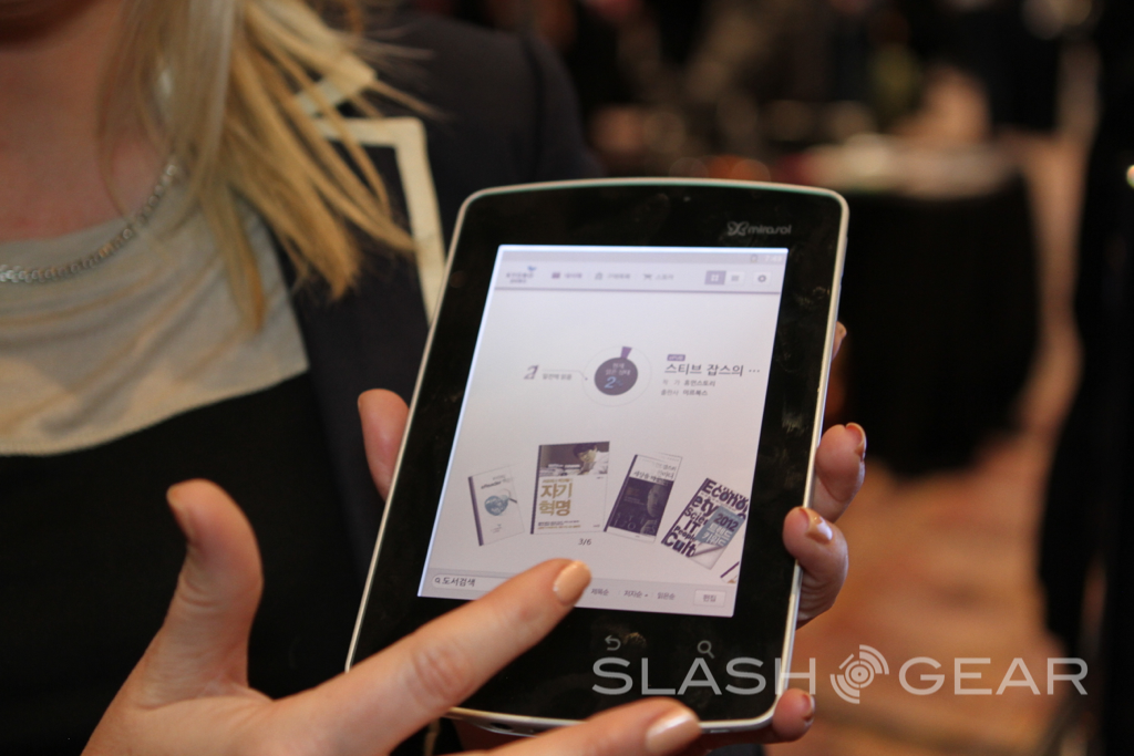 Kyobo, Korea's largest bookseller — offers over 100,000 ebooks for the Mirasol eReader, as well as video education content and many other educational options, integration with social networking services and English text-to-speech support. With magazines for the down-time between study classes and possibly 3 weeks of battery life this will be one interesting eReader. The Kyobo eReader is available already starting at $310 USD in South Korea but finally seeing it here in the US means we could be enjoying this technology in markets here soon.