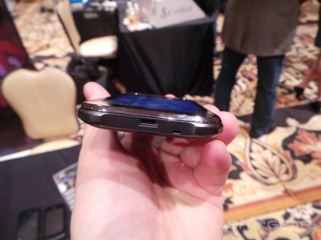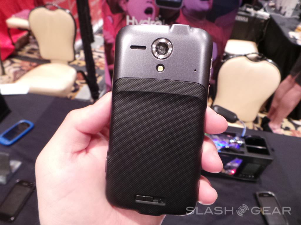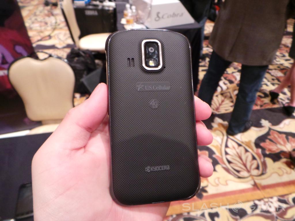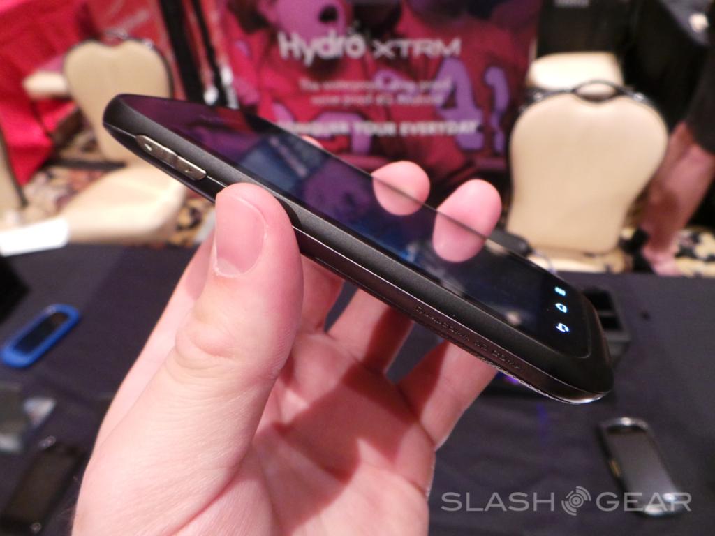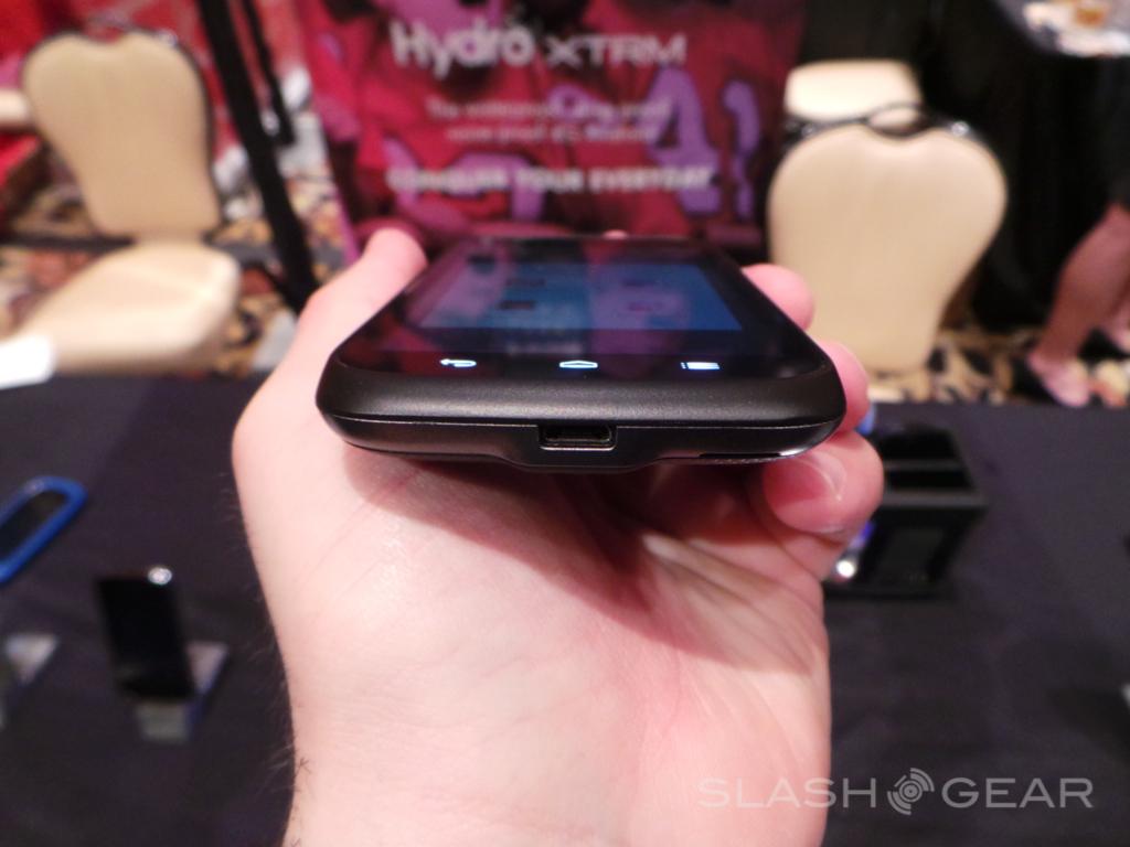 First off we'll start with the Kyocera Hyrdo XTRM, as it will be arriving on US Cellular and has a more modern looking design. Offered with a nice brushed aluminum front bezel it's easier on the eyes too. The entire design is more traditional than most ruggedized smartphones, and thanks to a special coating it doesn't need rubber flaps over the micro-USB and headphone jack. It's all out and in the open, yet we dropped it in water without issue too.