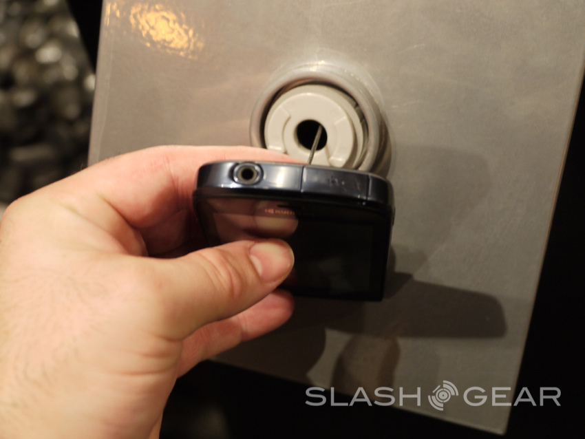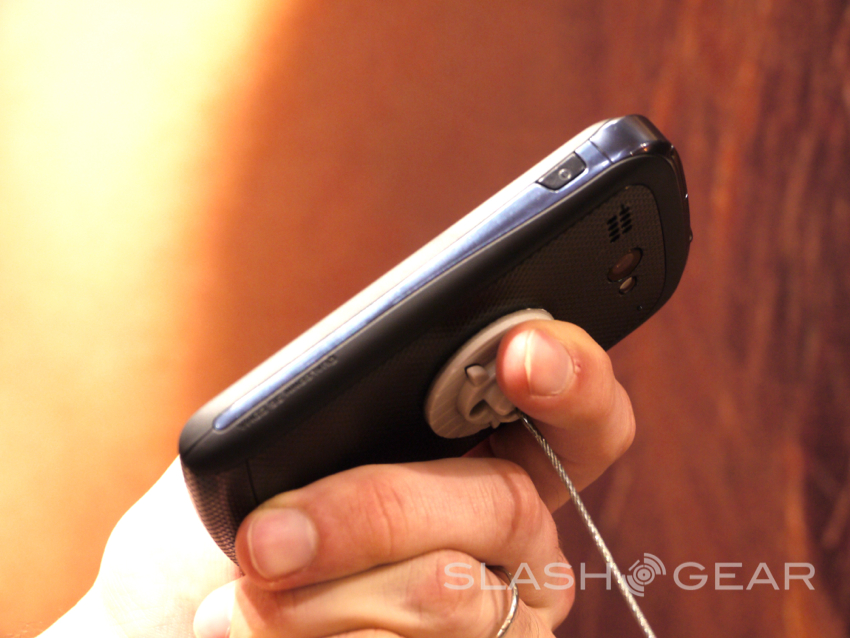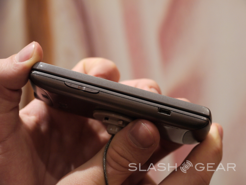 Next up was the new Hydro from Kyocera. This being their water-resistant offering that will also be geared for the budget crowd. If you were waiting for a high-end smartphone from Kyocera that day still has yet to come. With almost the exact same specs as the Rise — only without the QWERTY keyboard — the Hydro offers the same 3.5-inch display with a 320x480 resolution, 1 GHz single-core processor from Qualcomm, 512MB of RAM and 2GB of internal storage out of the gate with an optional micro-SD slot for extra storage.