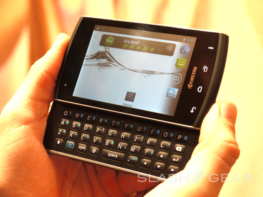 The more impressive of the two, the Kyocera Rise comes equipped with a low-res 480x320 3.5-inch display, a Qualcomm single-core processor, 512MB of RAM, and a 3.2 megapixel camera complete with Android 4.0 ICS for the operating system. They've uniquely added the same ICS interface buttons, only they are capacitive and not on-screen like many others. It should be available in the second half of the year although pricing and carriers were not yet available. The overall design and build quality was quite decent, as was the typing experience on the slide-out QWERTY keyboard, but we expect this to clearly come in at a budget-friendly price given the specs.
