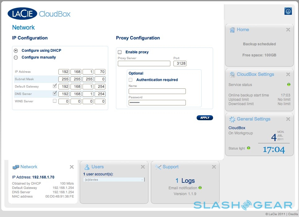 Backup devices are generally at the "less glamorous" end of the gadget scale, but ironically some of the most important. Not having the very latest smartphone or gaming device may be frustrating, but not as much as discovering the hard-drive in your computer has crashed and taken with it all your files, multimedia and other content. LaCie is hoping its CloudBox will prevent some of those headaches, a local/cloud double-act that pairs a simple network drive with a companion web backup service. Setup is, so the promise goes, simple; problem is, you pay for that convenience. Is the CloudBox heaven-sent or an unwelcome stormfront? Check out the full SlashGear review after the cut.