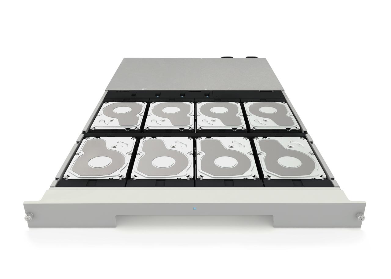 Inside the 1U rack-mount case is room for up to eight 3.5-inch drives, which in the case of this 48TB model are all populated with 6TB Seagate HDDs (there's no telling when or if LaCie will support Seagate's new 8TB drives, which would take the 8big up to 64TB). Out of the box it's set up to run in HFS+ RAID 5 mode, though it'll also support RAID 0/1/5/6/10/JBOD if you so prefer.