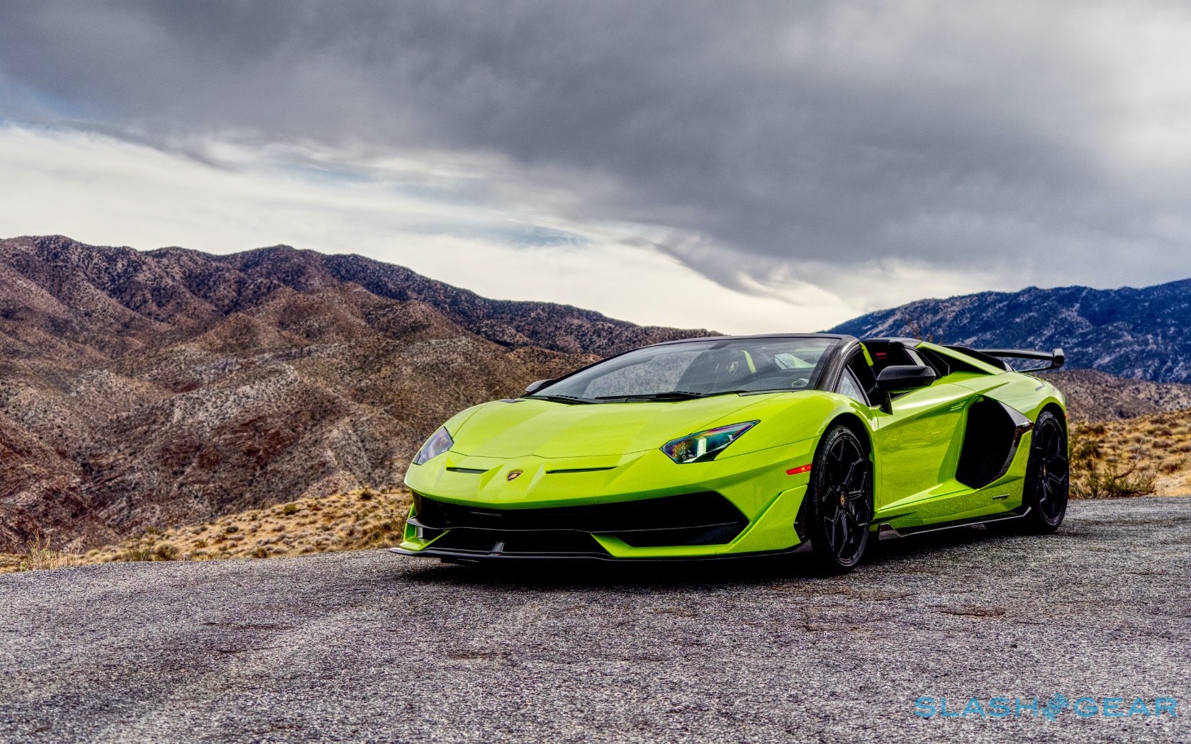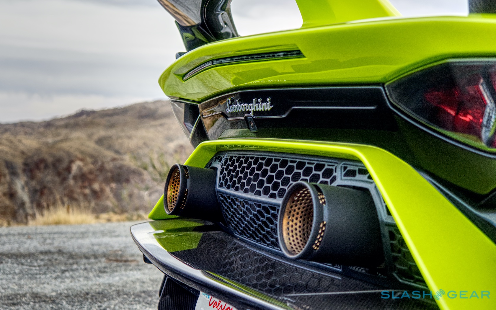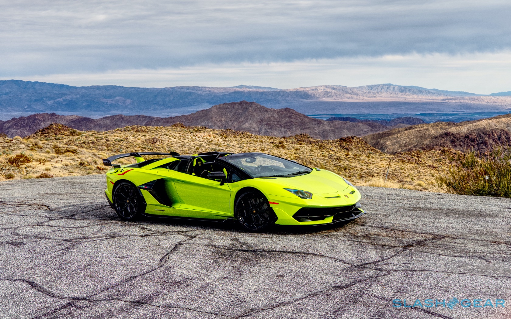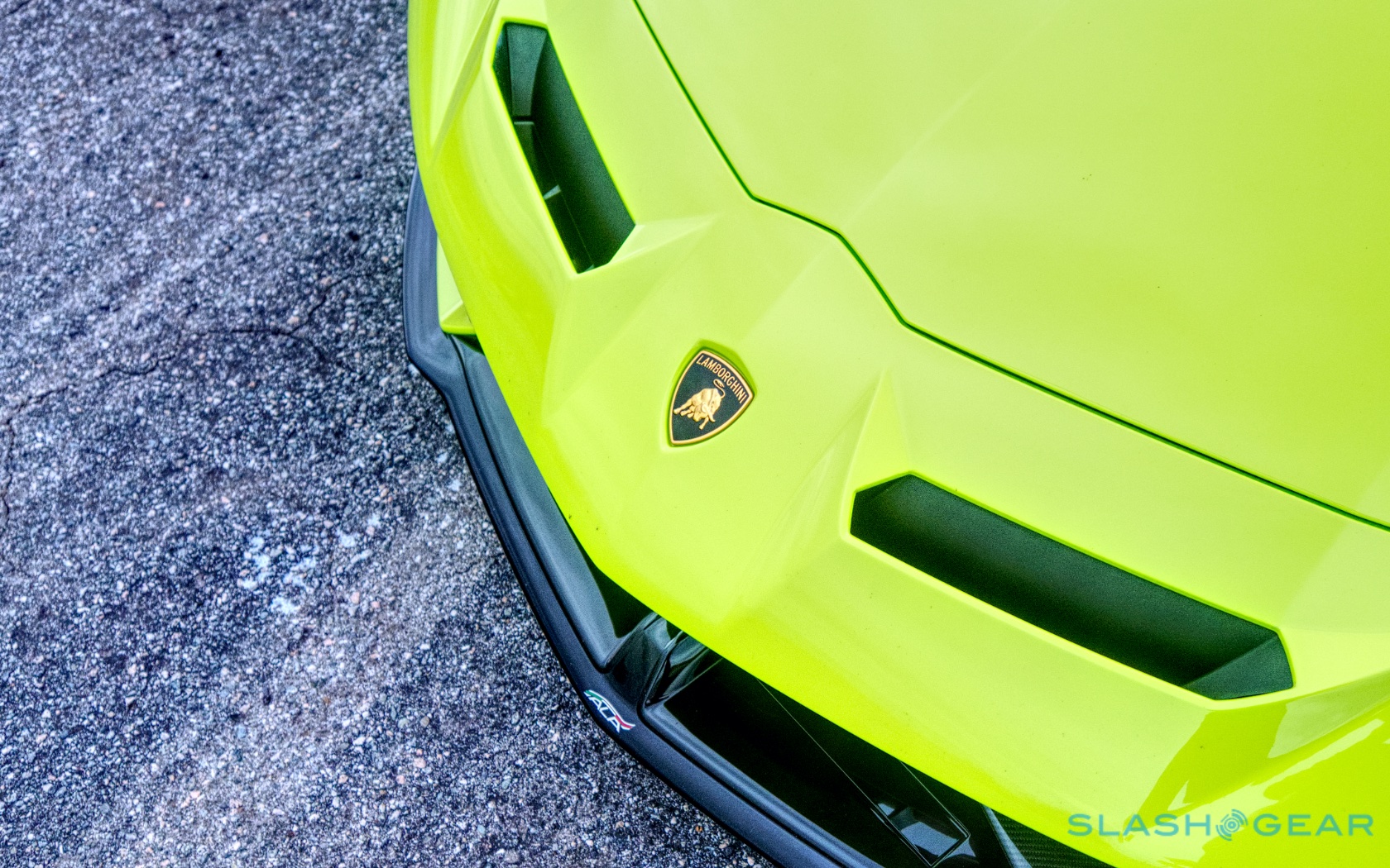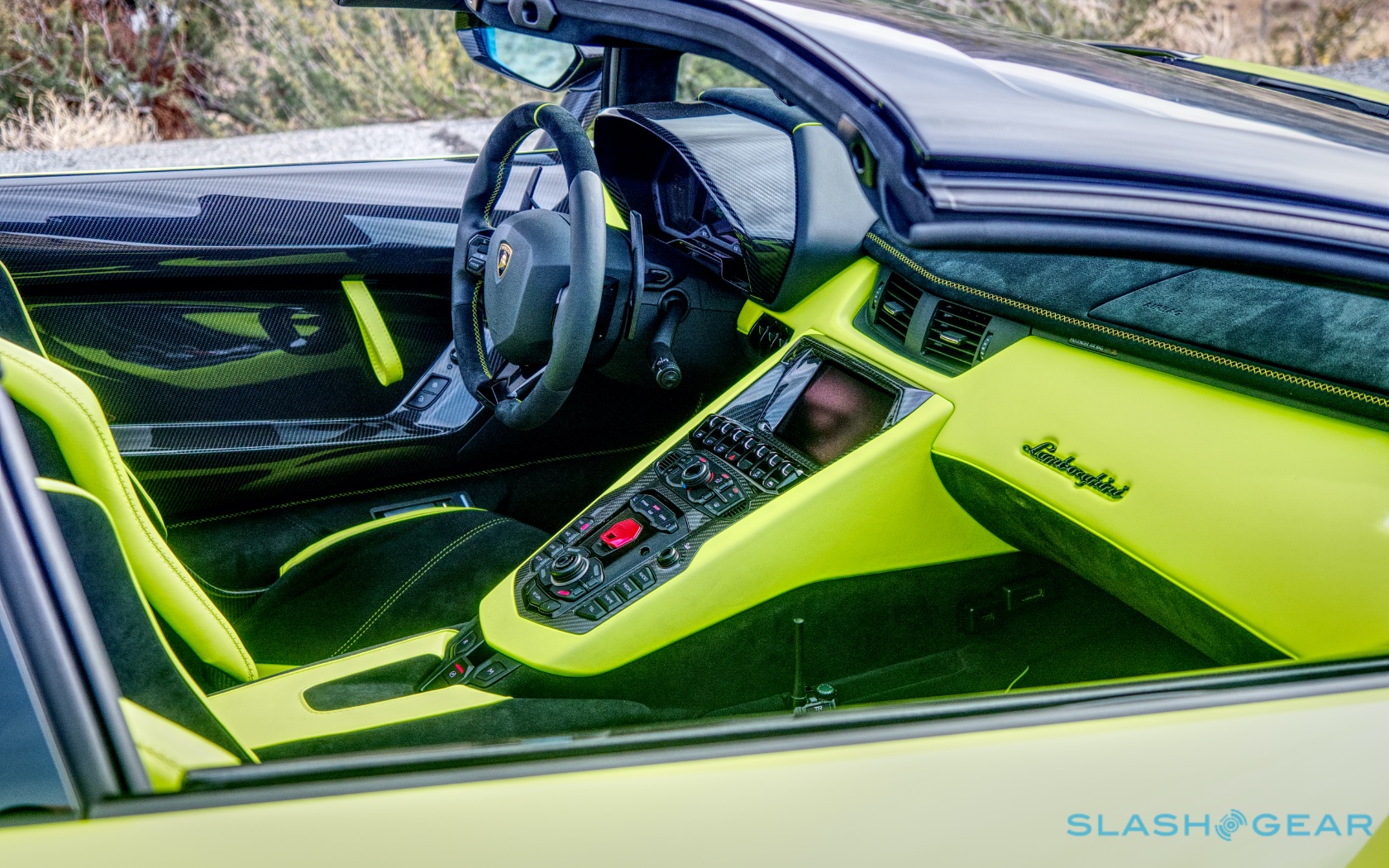 Of course, the big difference here is the removable roof: carbon fiber panels that stow inside the front trunk. That way you get to really hear the 6.5-liter V12 engine howl, and howl it does. Nobody ever accused an Aventador of being subtle, but the SVJ Roadster cranks that up to legendary levels.