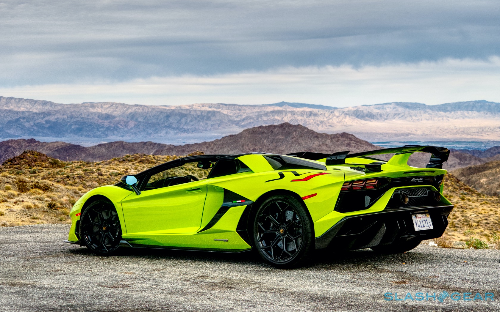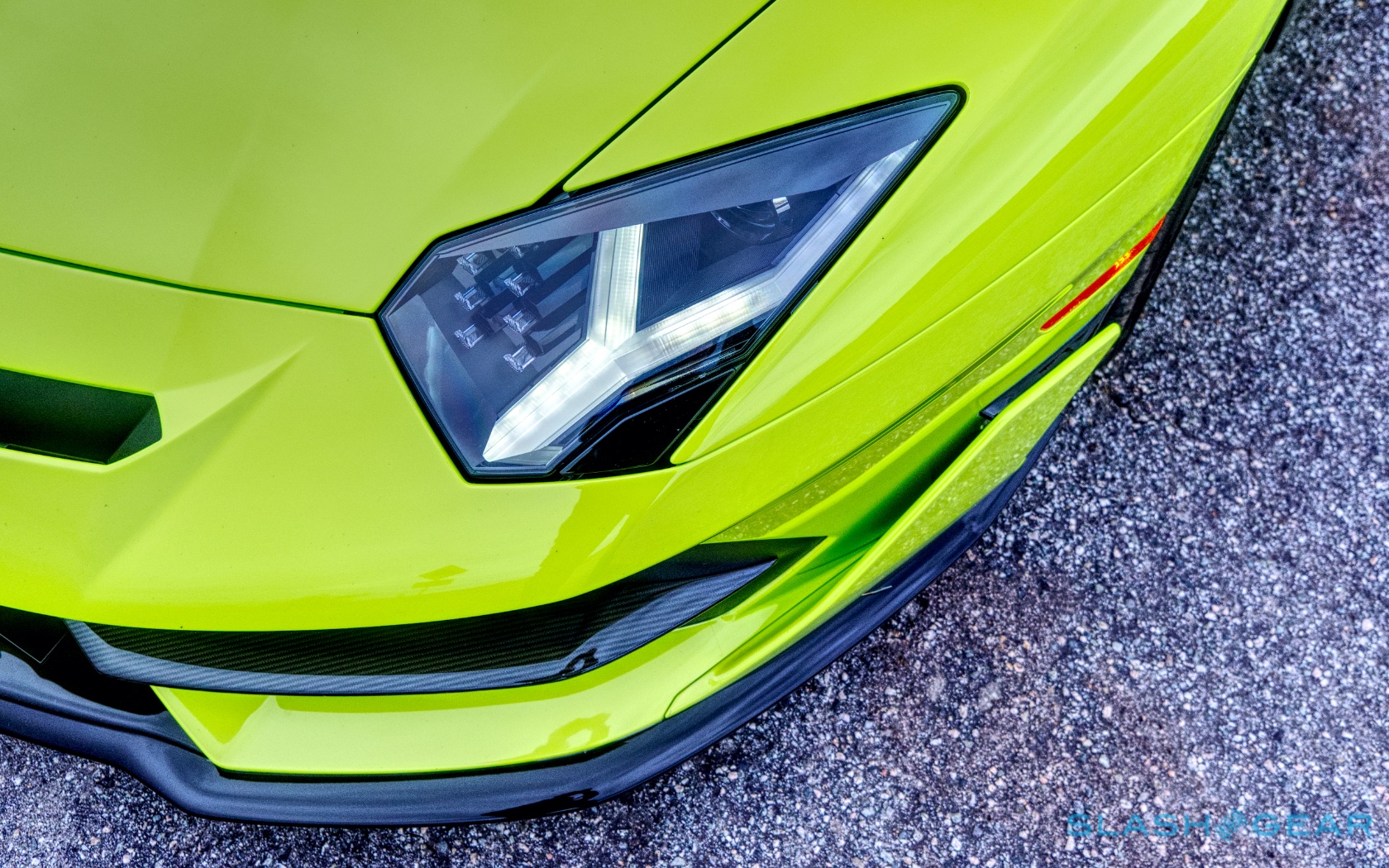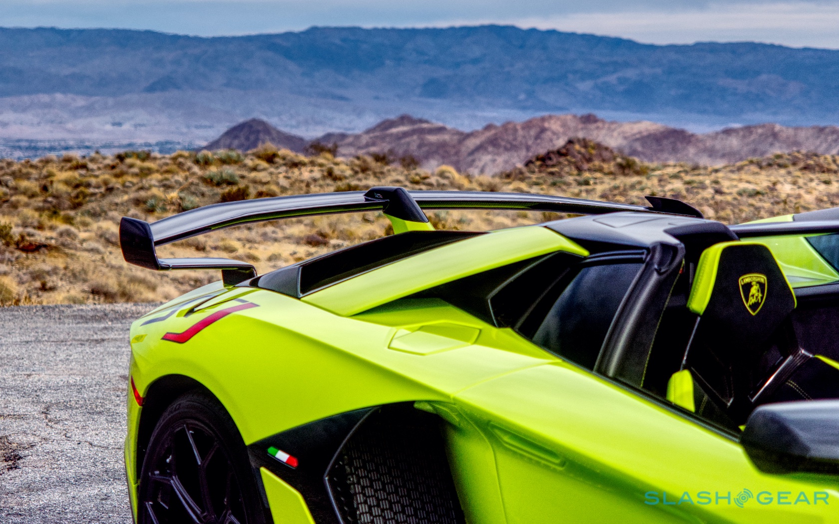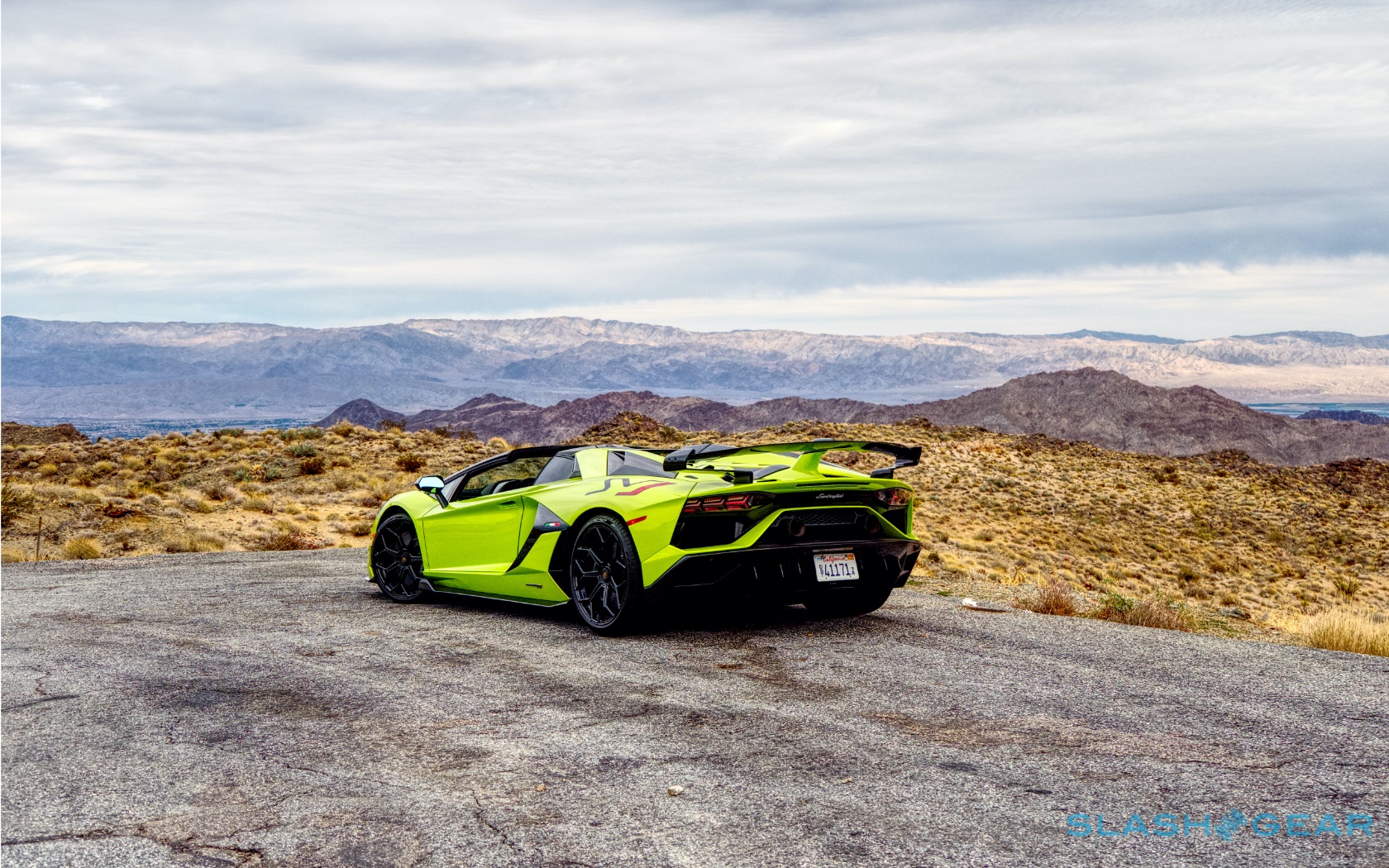 Of course, the big difference here is the removable roof: carbon fiber panels that stow inside the front trunk. That way you get to really hear the 6.5-liter V12 engine howl, and howl it does. Nobody ever accused an Aventador of being subtle, but the SVJ Roadster cranks that up to legendary levels.