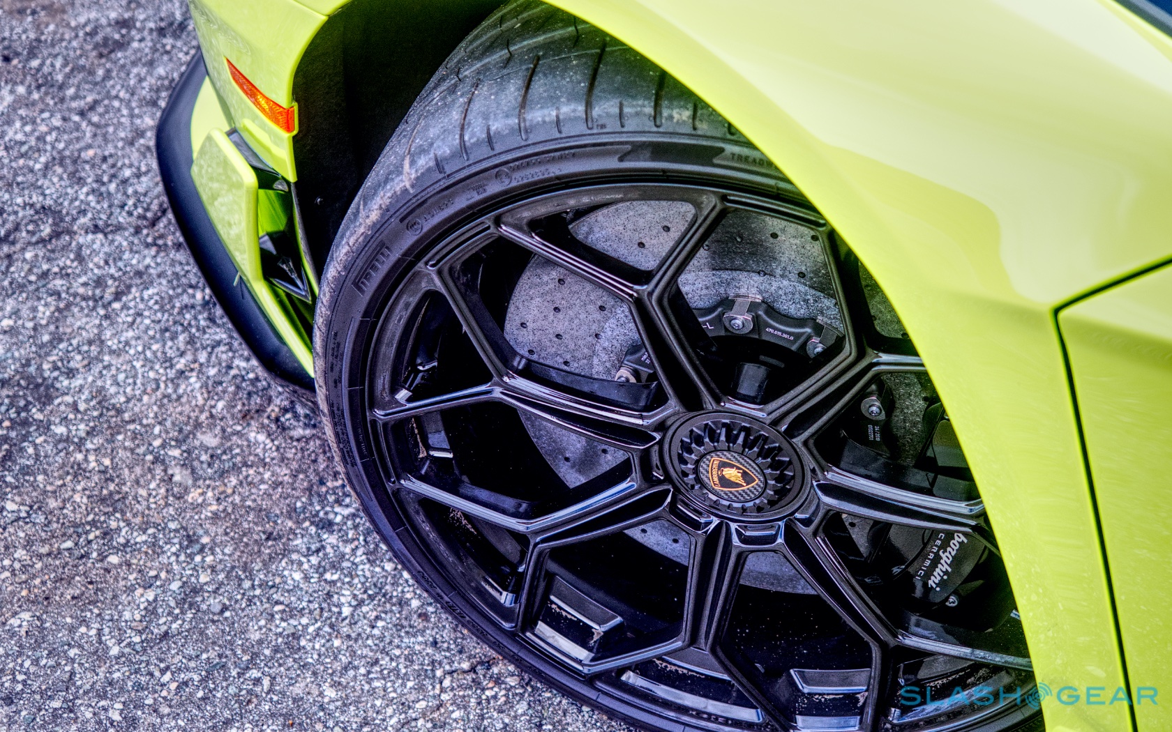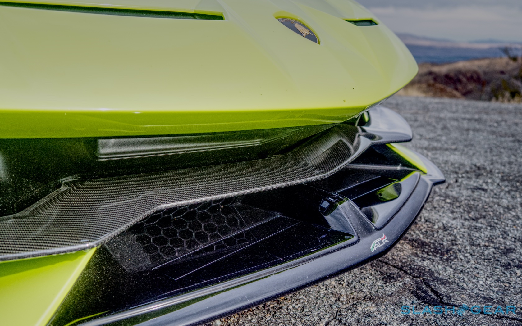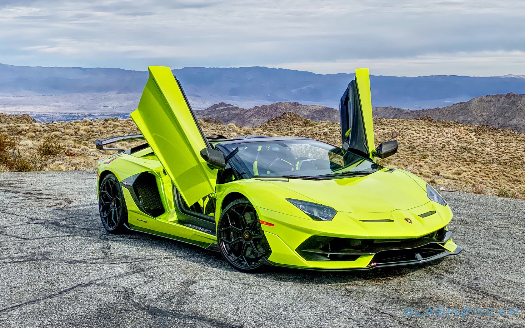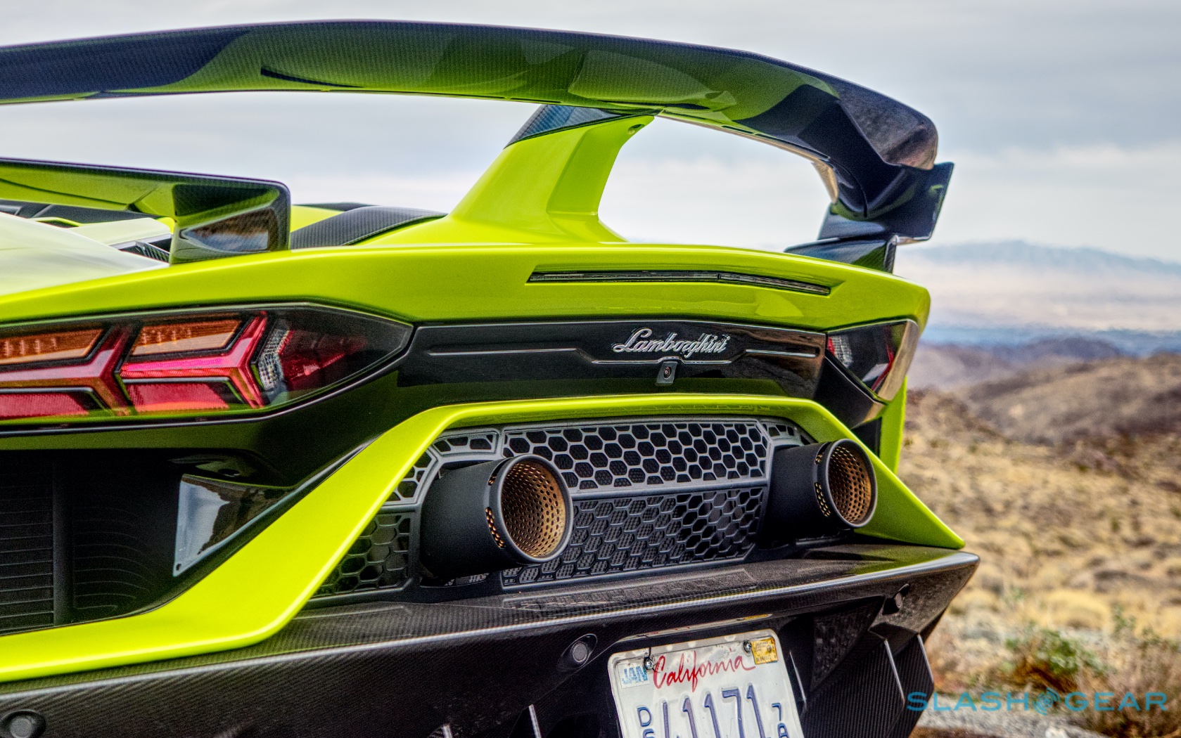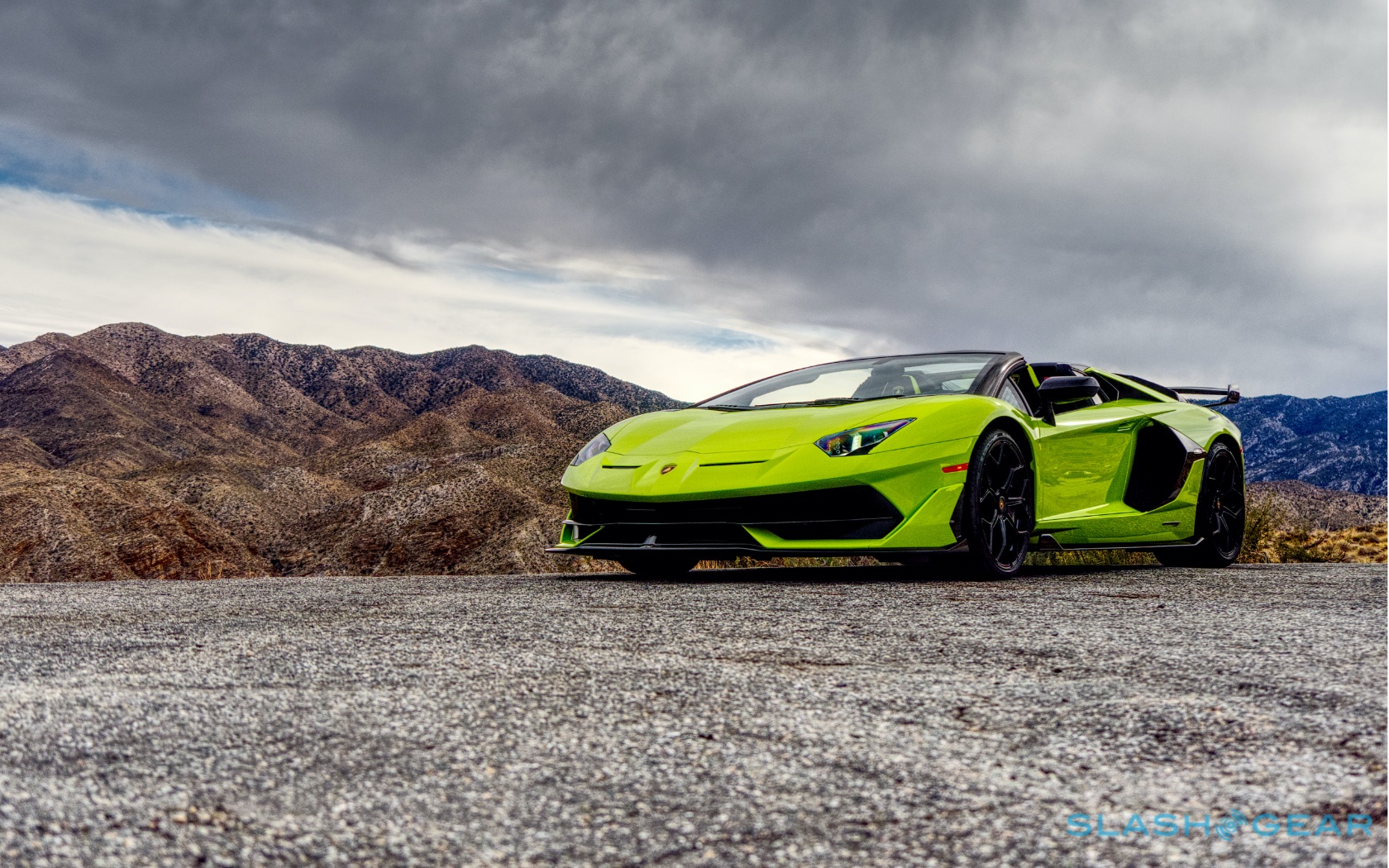 Of course, the big difference here is the removable roof: carbon fiber panels that stow inside the front trunk. That way you get to really hear the 6.5-liter V12 engine howl, and howl it does. Nobody ever accused an Aventador of being subtle, but the SVJ Roadster cranks that up to legendary levels.