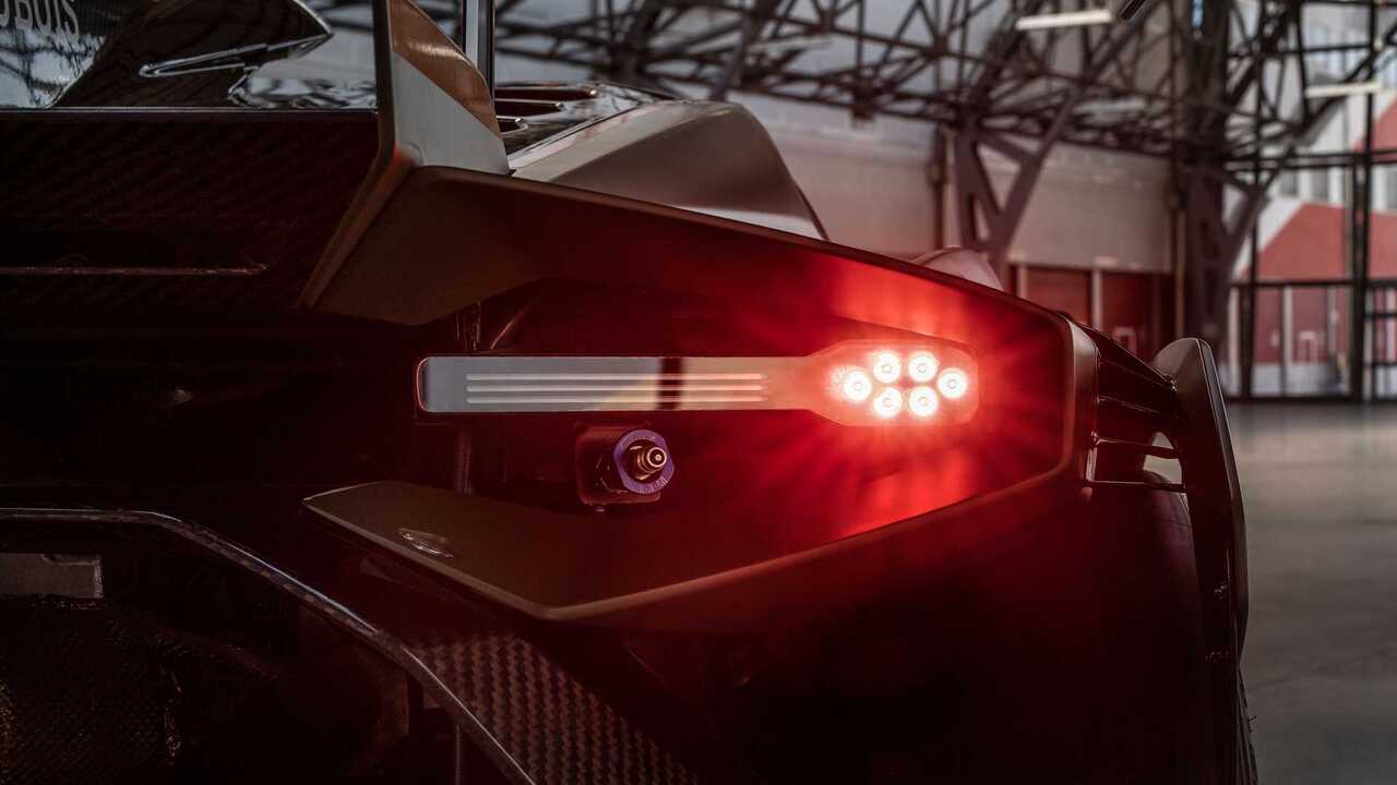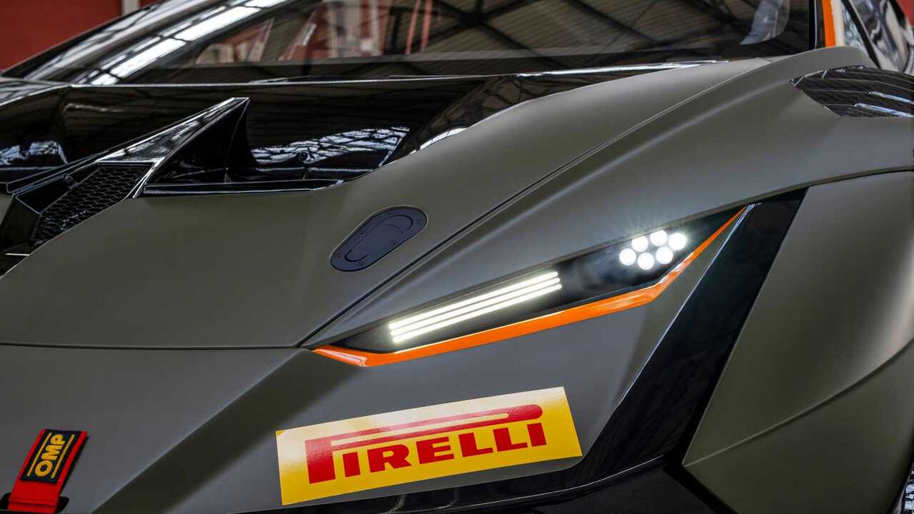 Other aero bits include new air curtain intakes (to optimize airflow and downforce), a gigantic carbon-fiber rear spoiler, and unique rear LED taillights with frames inspired by the legendary Lamborghini Countach. Supporting the vintage-inspired light clusters is an arched carbon-fiber bumper that also links to the rear diffuser fins.