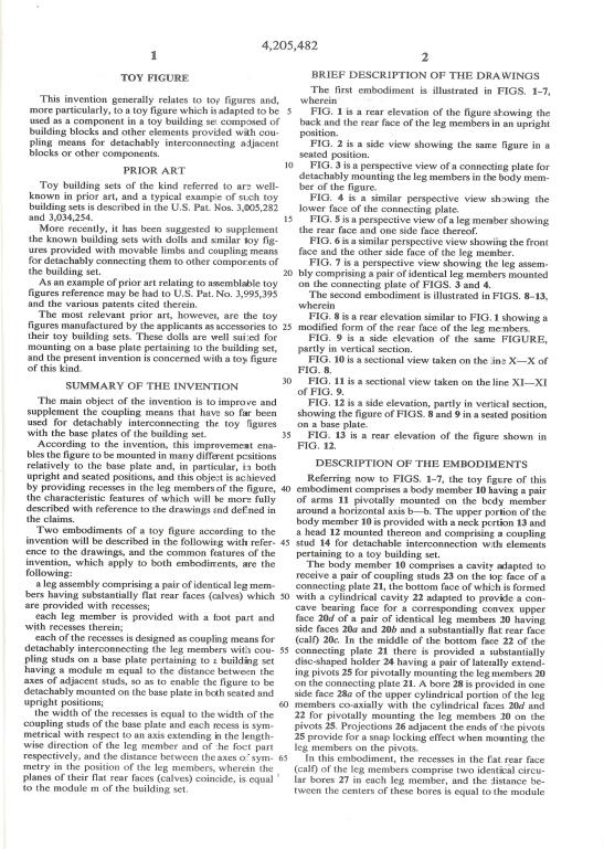 The patent we're looking at is the original US-filed USPTO-bound document for the LEGO Minifigure. This document shows the basic ins and outs of the Minifigure as it existed in its most basic form. It is with this document that LEGO remains highly unique, and highly brand-powerful here in 2018. In the gallery above you'll see scans of the patent as provided by LEGO this week.